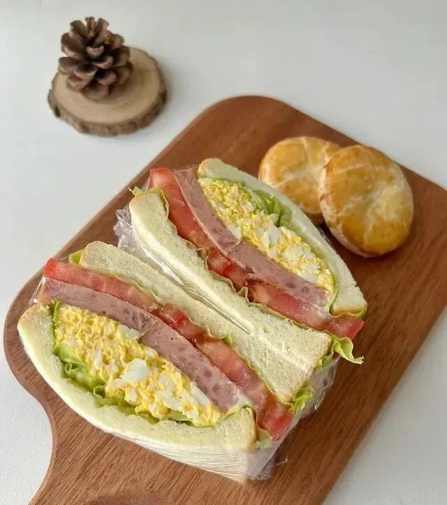 我之前试过很多 , 面包片夹果酱吧 , 十点就饿了 , 买外面的三明治吧 , 贵 , 而且馅料你也不知道新不新鲜…后来我就自己琢磨 , 发现这个搭配 , 真的绝了!