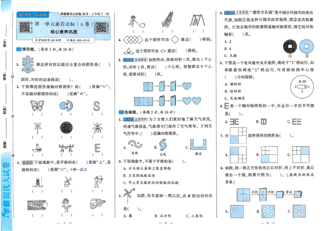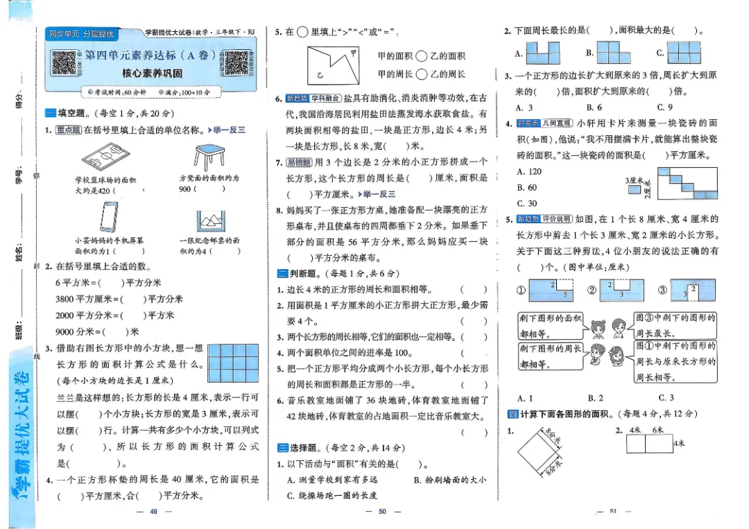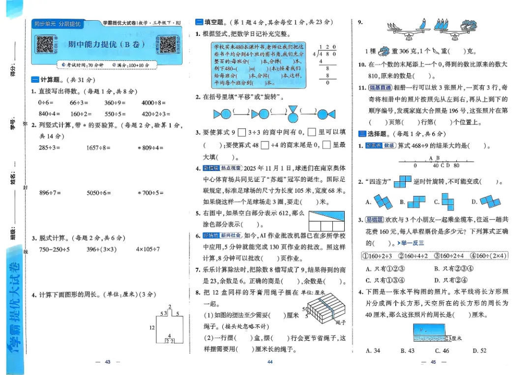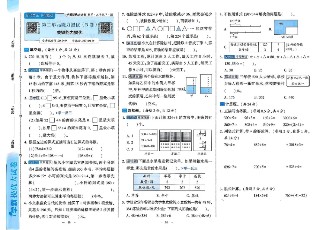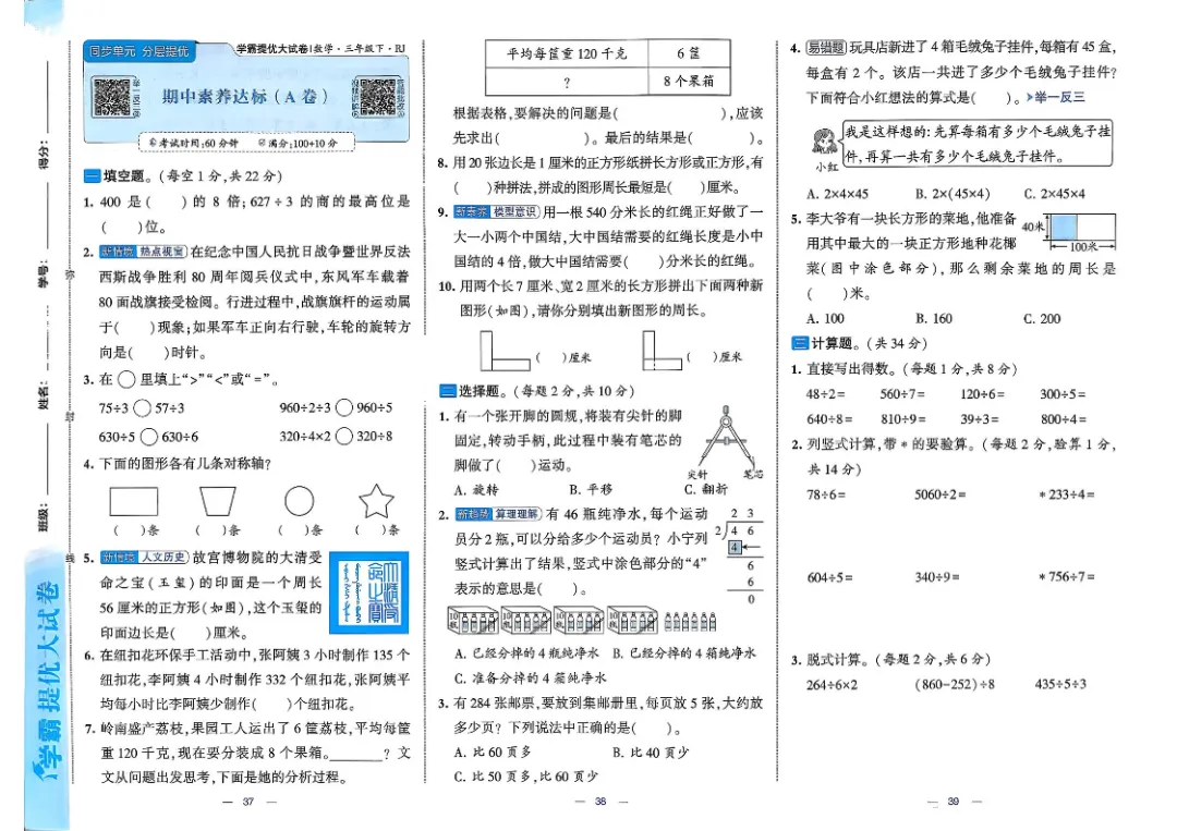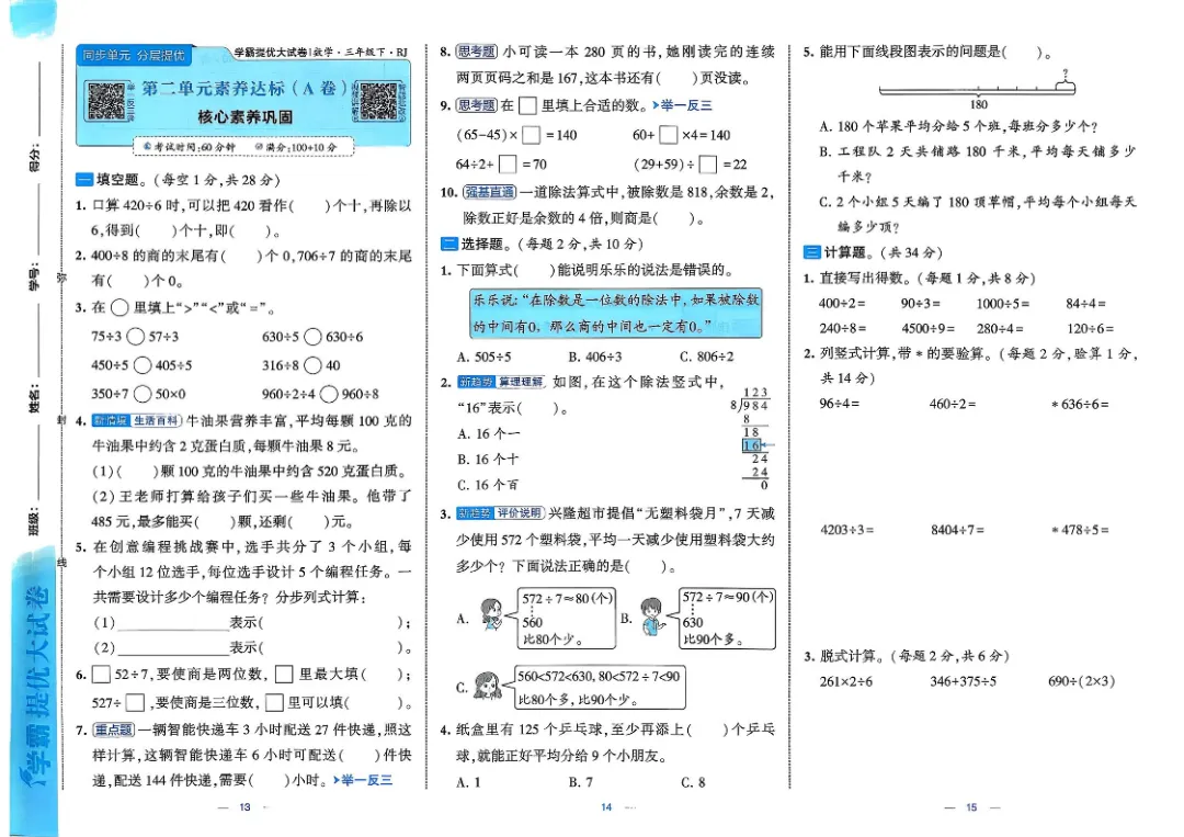 26春三年级下数学人教版《单元月考测试卷+期中期末测试卷+易错专项复习卷》(附答案 共28套)高清完整电子版