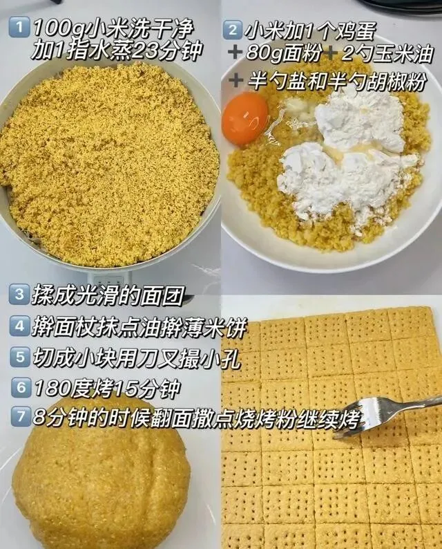 小米100克 , 鸡蛋1个 , 面粉80克 , 就这仨!没有添加剂 , 没有防腐剂 , 给孩子吃的东西 , 我比较在意这个。