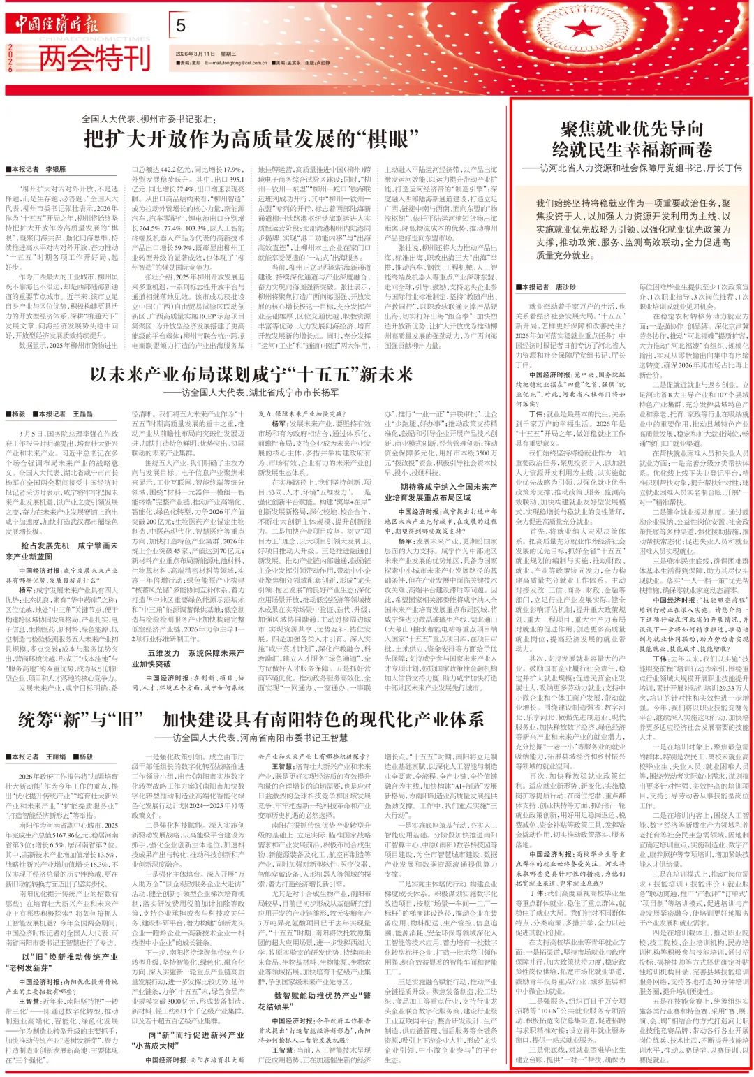 就业牵动着千家万户的生活,也关系着经济社会发展大局。“十五五”新开局,怎样更好保障和改善民生?2026年如何落实稳就业重点任务?中国经济时报记者日前专访了河北省人力资源和社会保障厅党组书记、厅长丁伟。