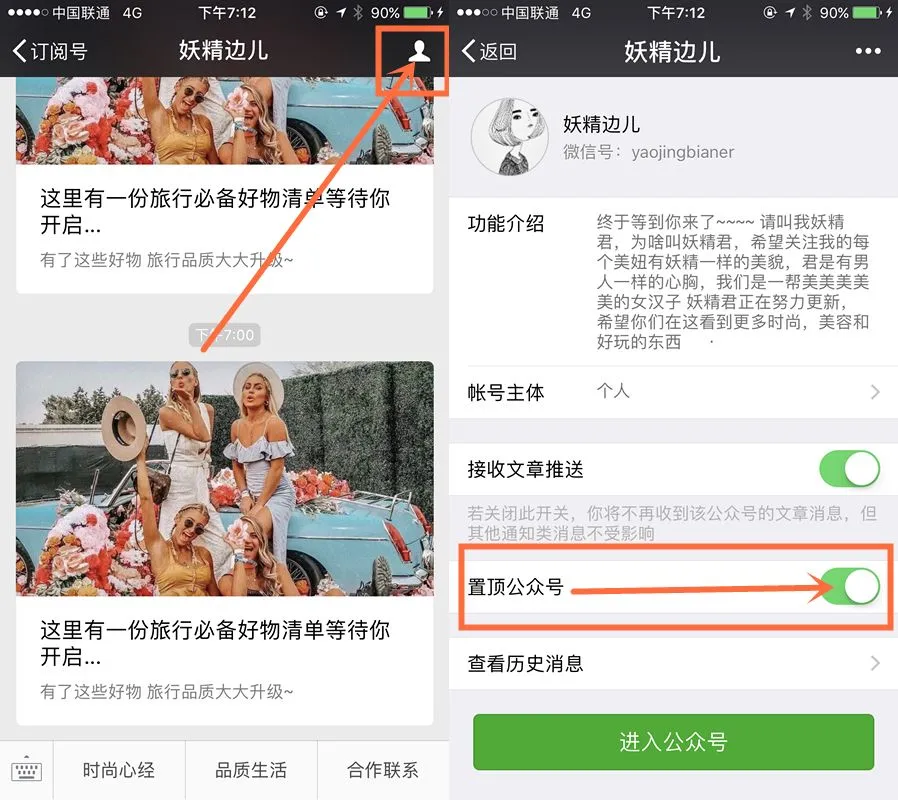 如何将我们的订阅号置顶