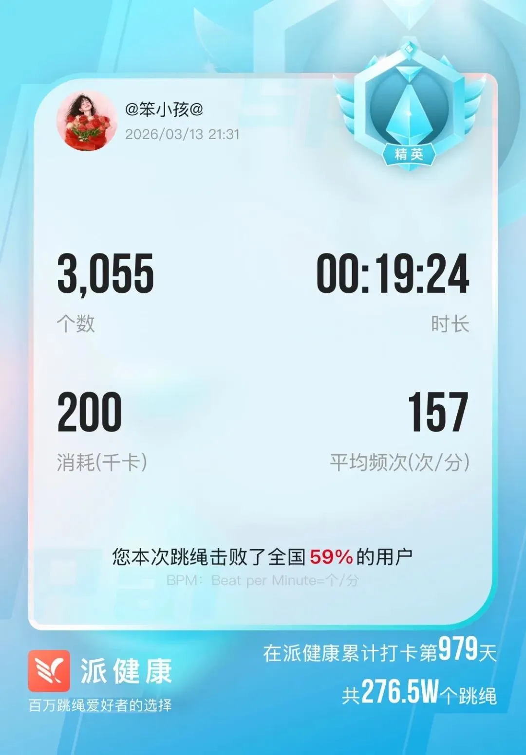 1)跳绳:3055个
