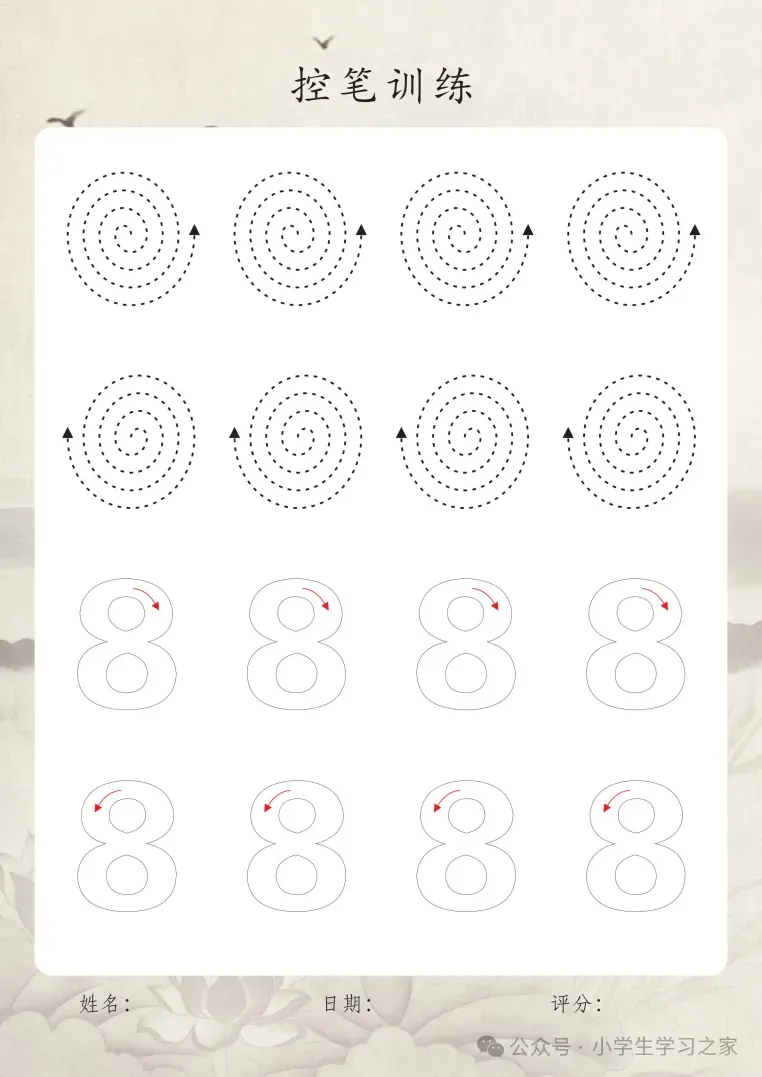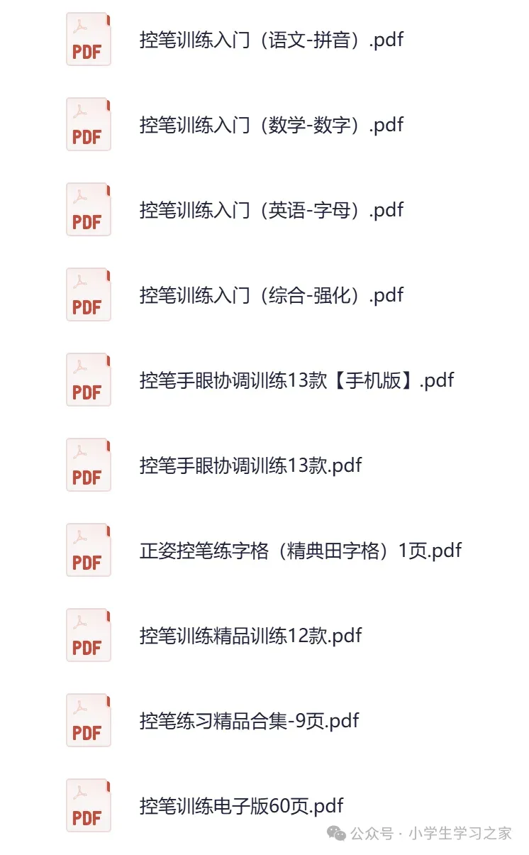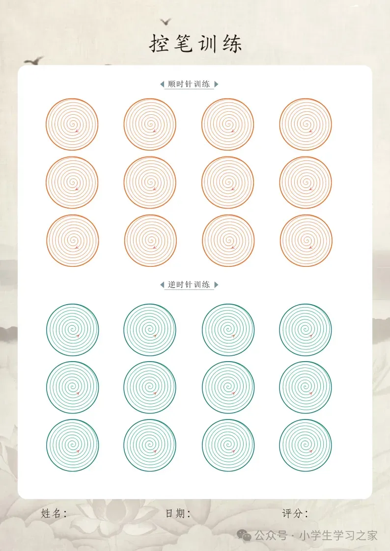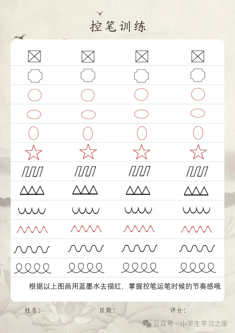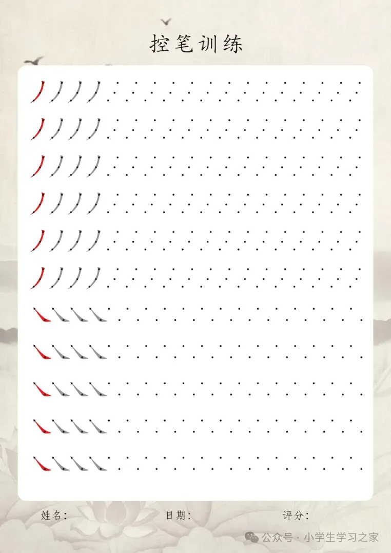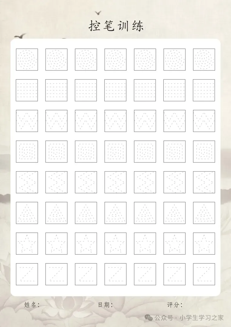 小学语文/数学/英语《控笔练习打印纸》PDF电子版资料合集(书法写字练字正姿控笔练习视频教程训练资料)1-6通用,建议各位家长领取打印给孩子学习!