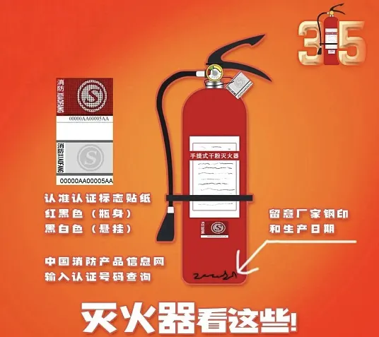 辨别:正规灭火器压力表指针应在绿色区域,瓶底或颈圈有清晰钢印,且必须贴有“消防产品身份信息标志”(S签)。