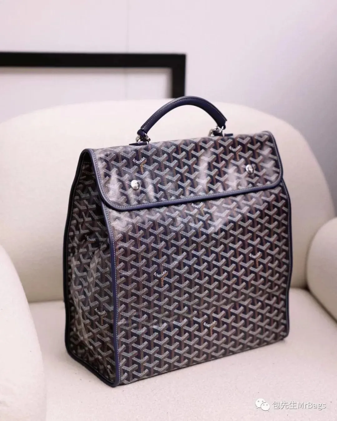 Goyard 说到双肩包这个主题,不得不提的还有Goyard Saint Léger!这两年人气蛮旺的,经常能在街上或机场看到它。方正立体的包身+经典的Goyardine图案,整体看上去很有复古的学院气息,上身感觉像个小画家~ 大而挺括的包型,容量非常好,关键是自重也蛮轻。 涂层帆布材质结实、耐用,日常背很省心~值得一提的是,Saint Léger还可以折叠收纳。旅行时放在行李箱里不怎么占地儿,需要时就可以拿出来用,非常方便!