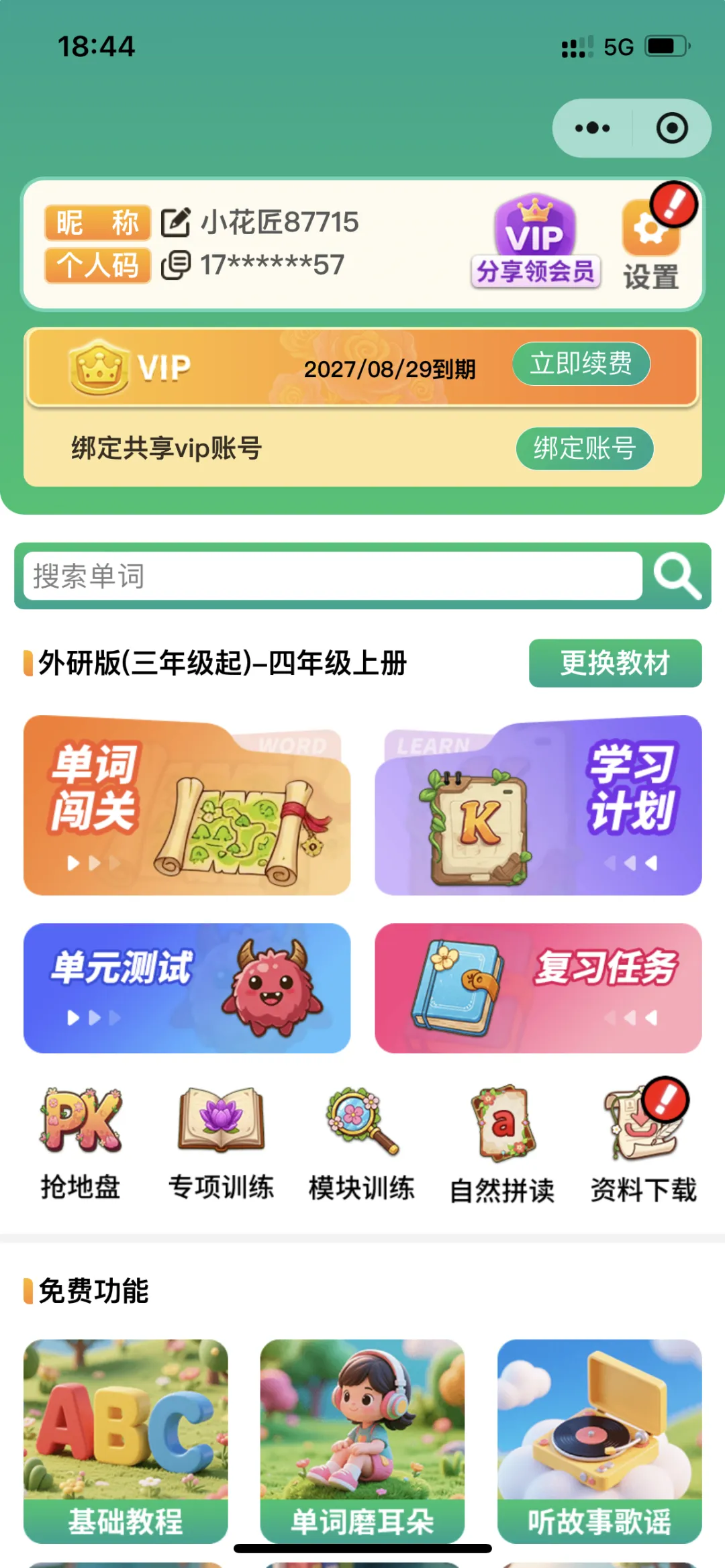 账号开通后,还支持绑定子账号。绑定后,可以在两个微信账户同时学习,互不影响。对于多娃的家长来说,开通后,一份会员费相当于开通了两个账号,真的是太实惠了!