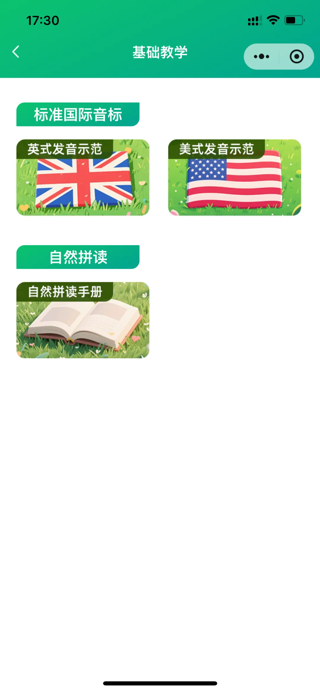 在【专项训练】里面,除了上面提到的“48个国际音标+自然拼读手册”的基础教程外,还有【课本教材】和【专题模块】。