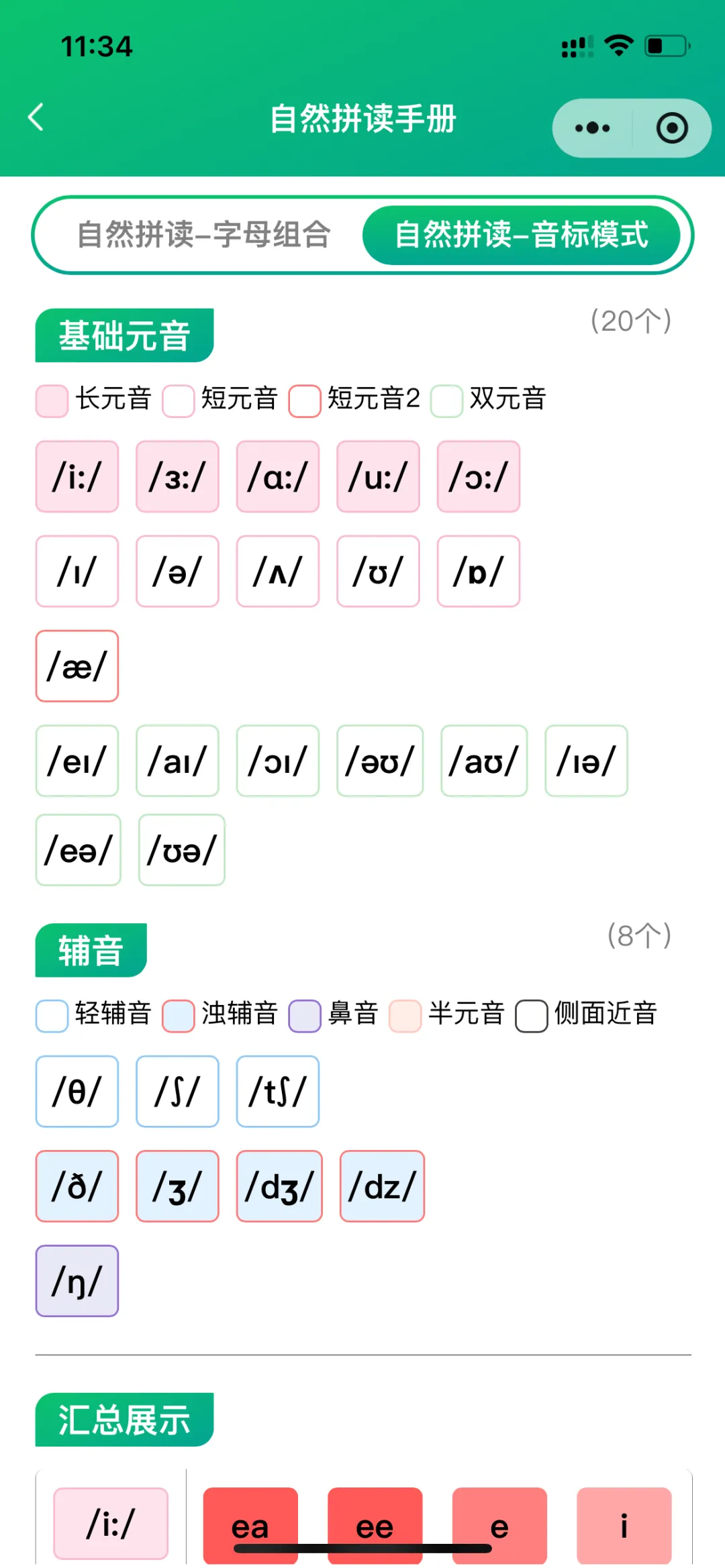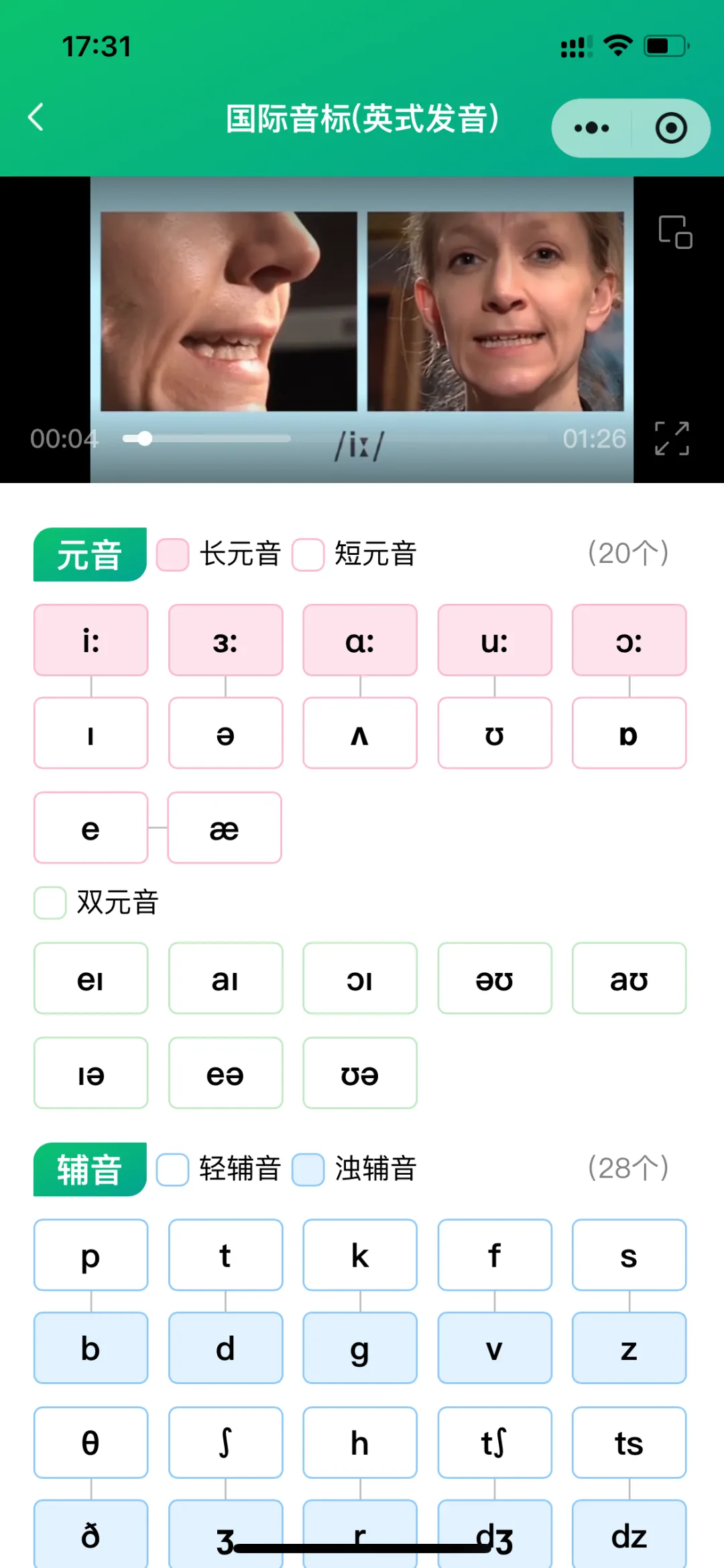 在【专项训练】—【基础教程】中,有48个国际音标的标准发音教程,还有字母及字母组合对应的音标发音。这也是后面学习单词的基础。