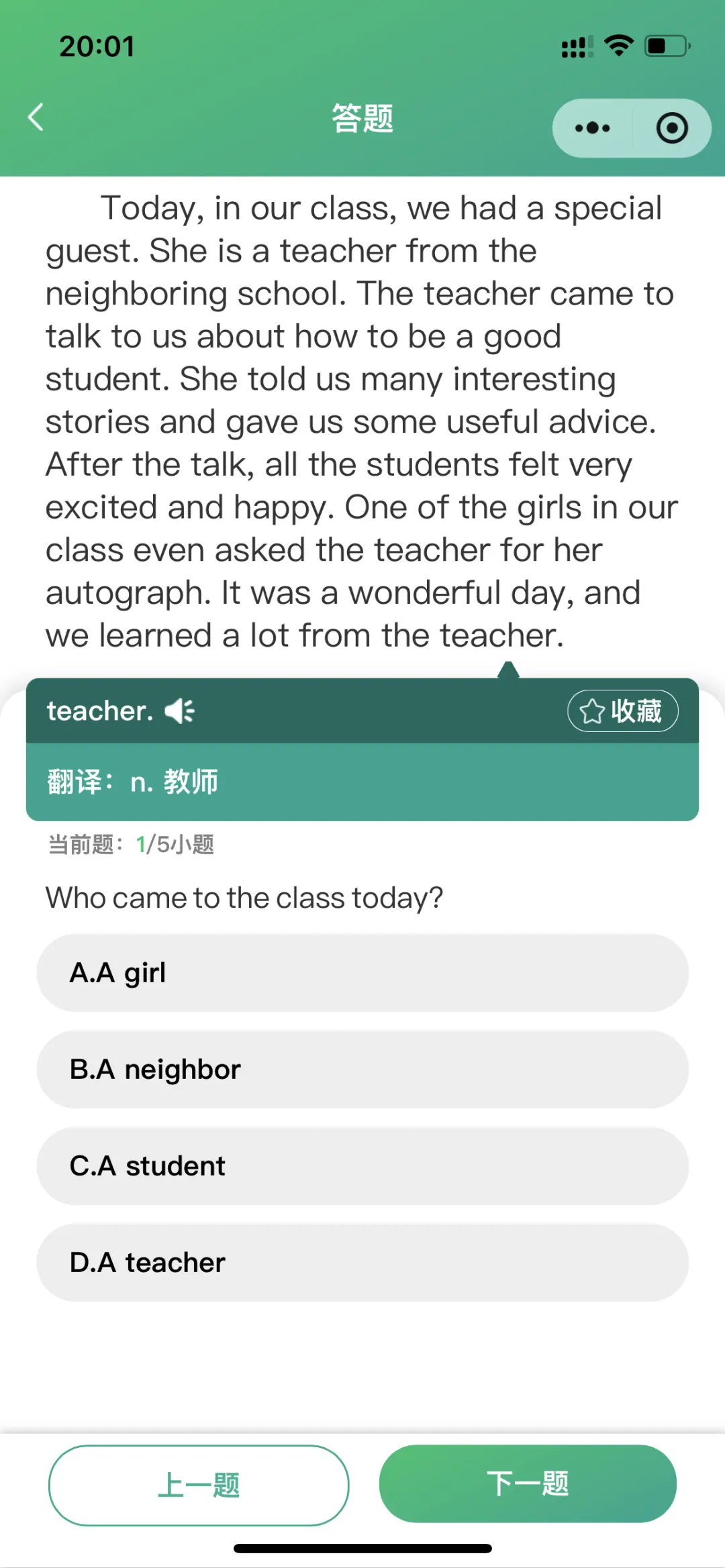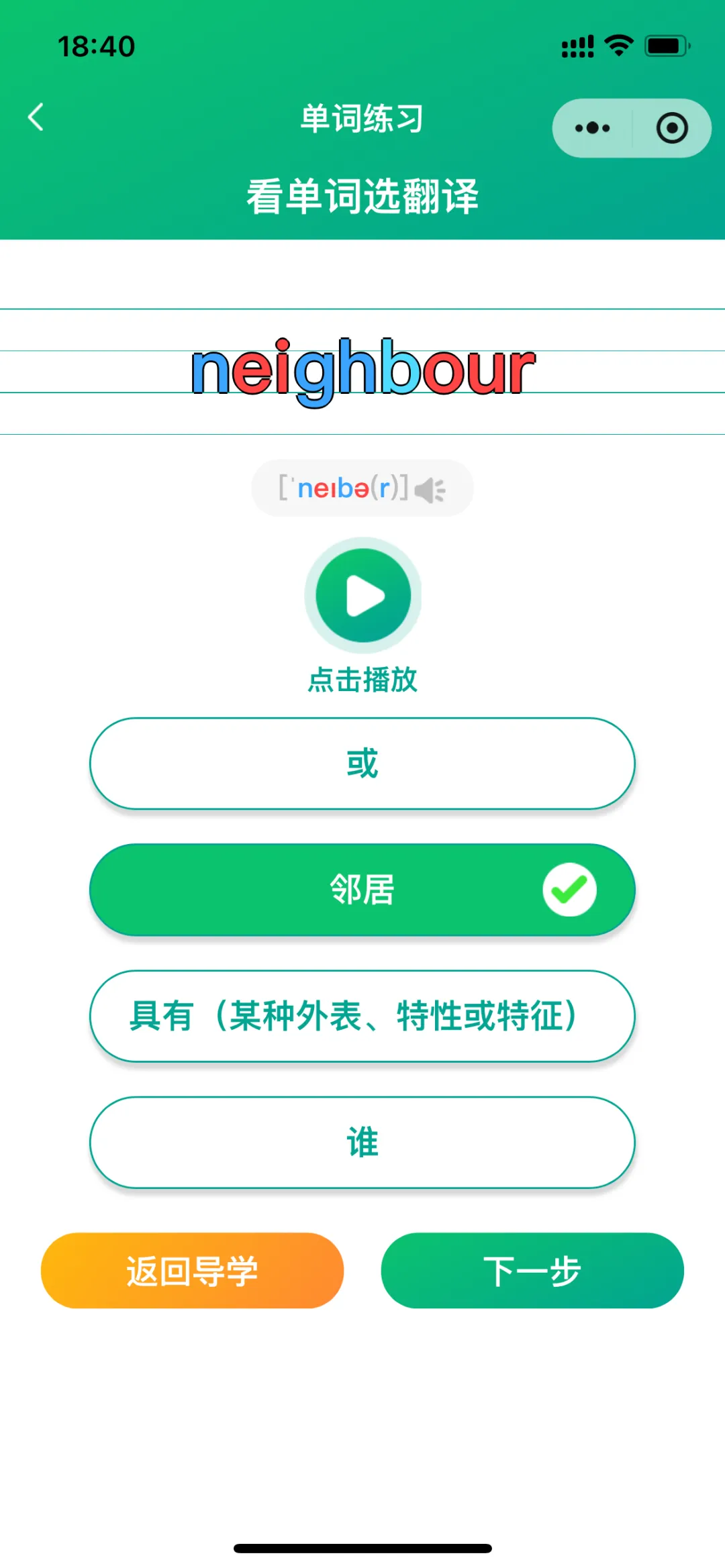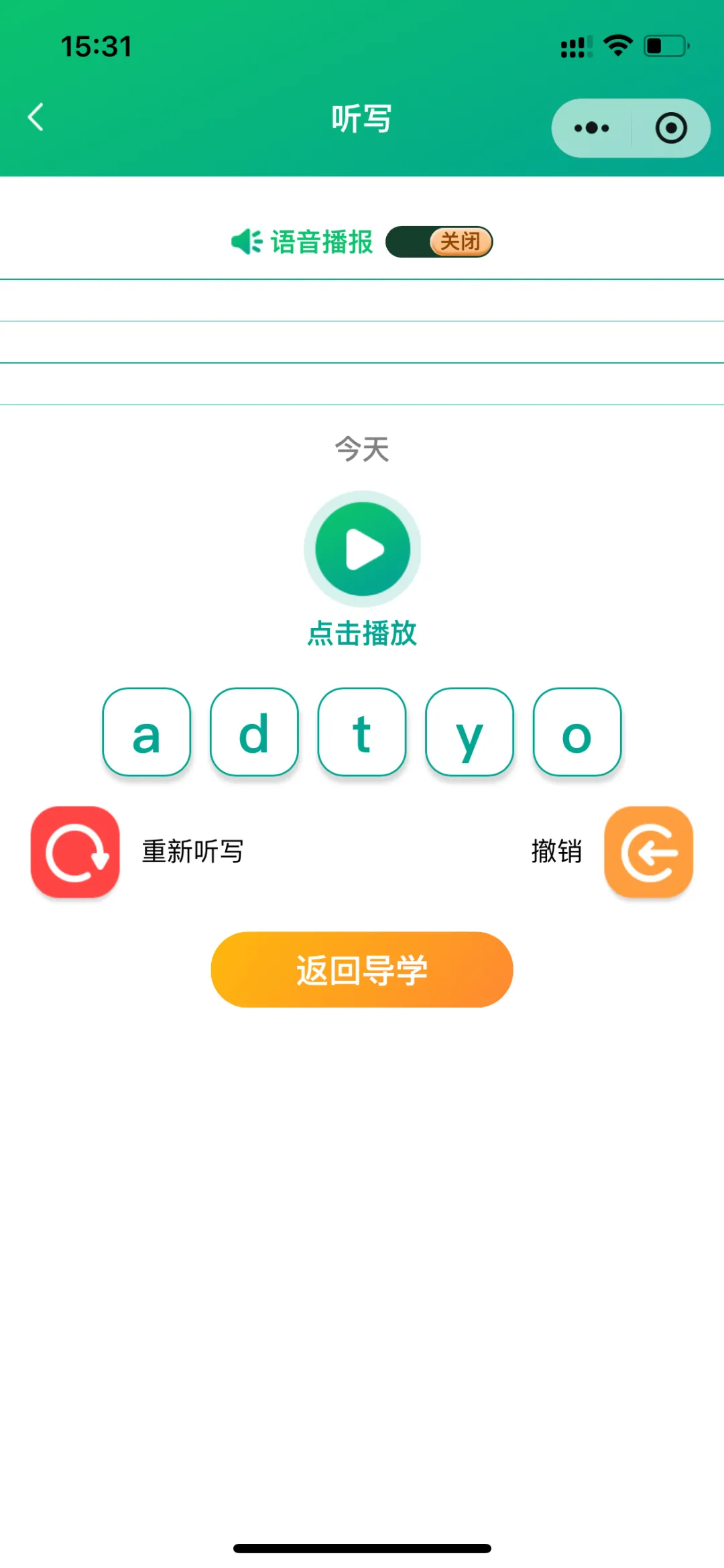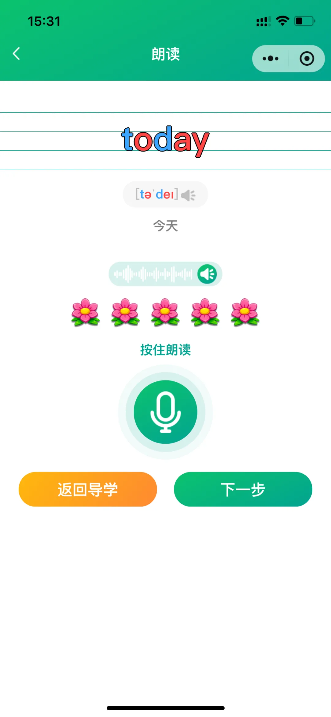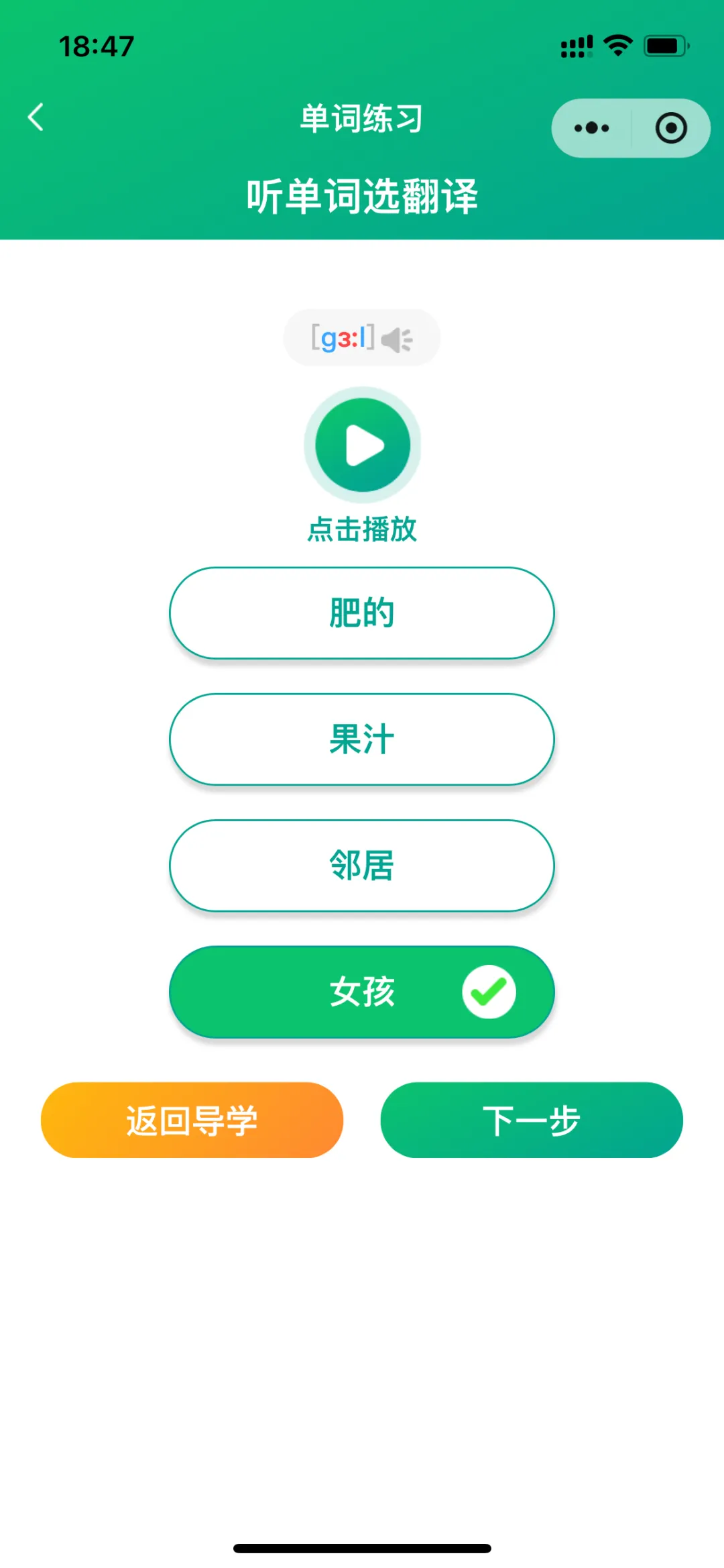 导学模式包括:导学、跟读测评(AI智能)、单词答题、拆分音节练习、自然拼读练习、听写;