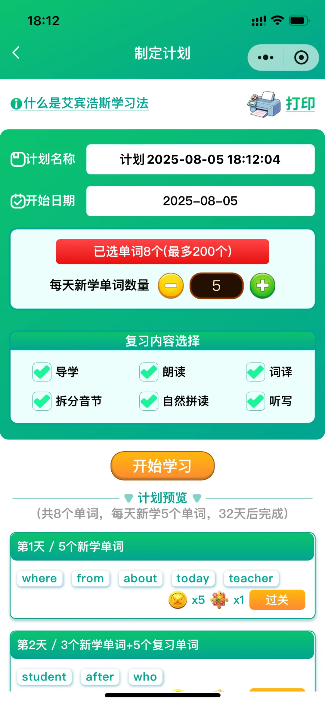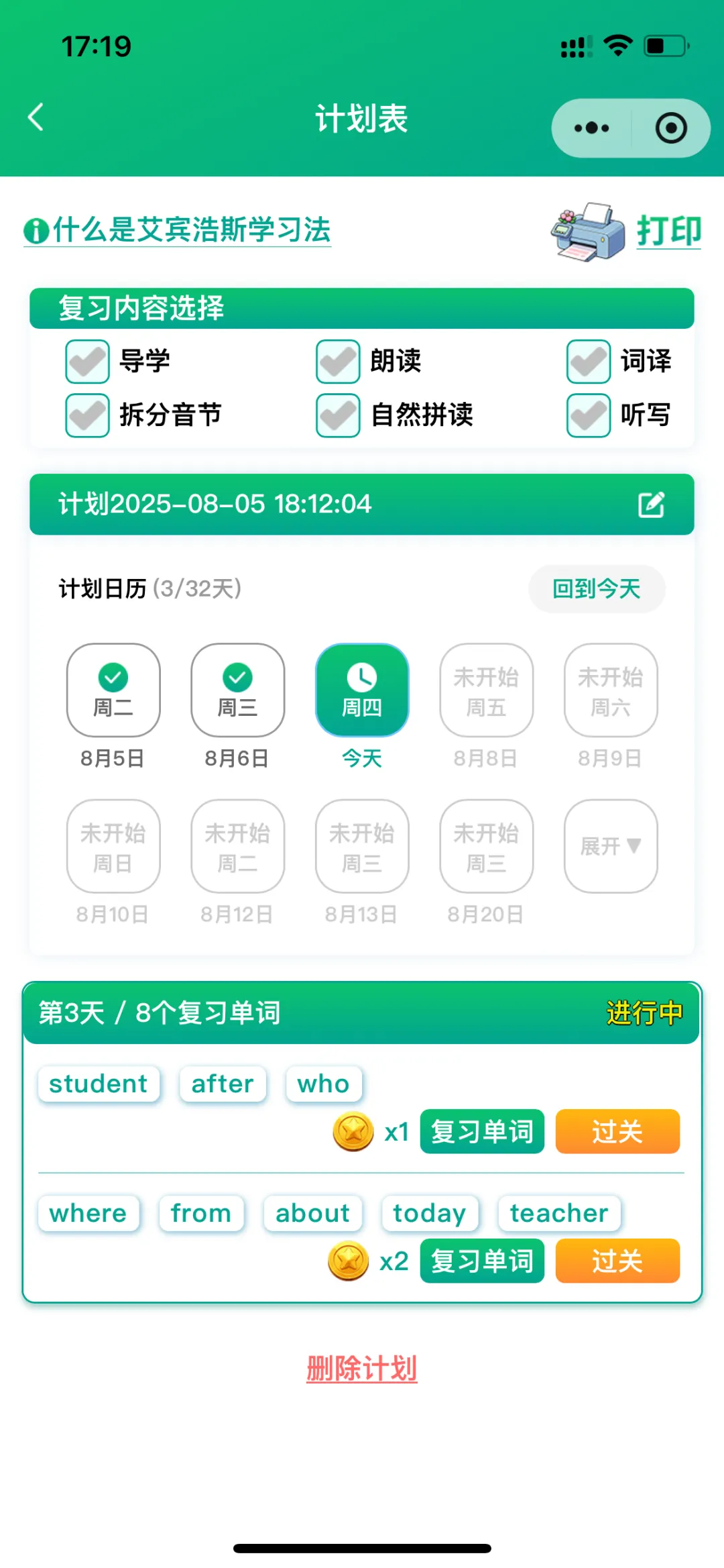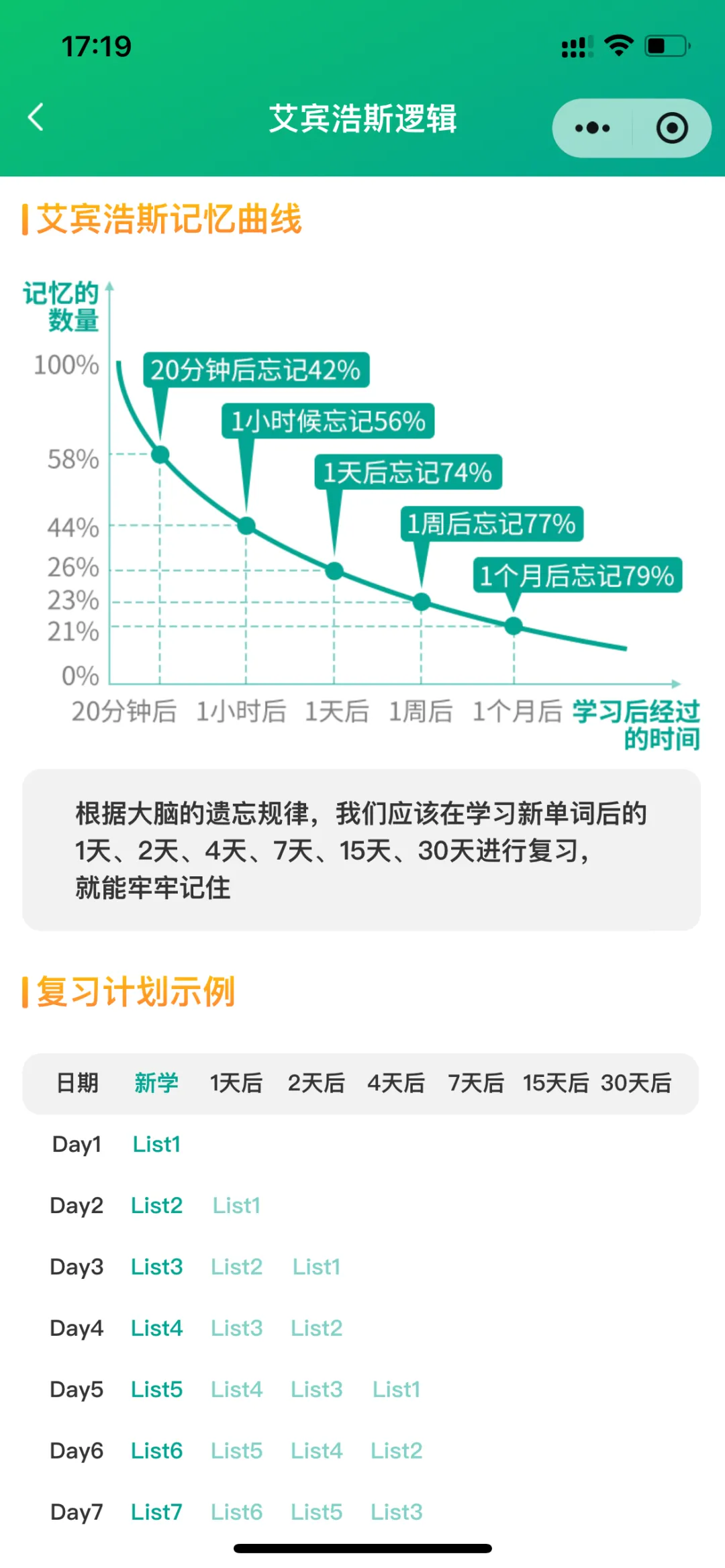 ⒐学习计划:以“艾宾浩斯遗忘曲线”为引擎,量身打造科学的学习计划