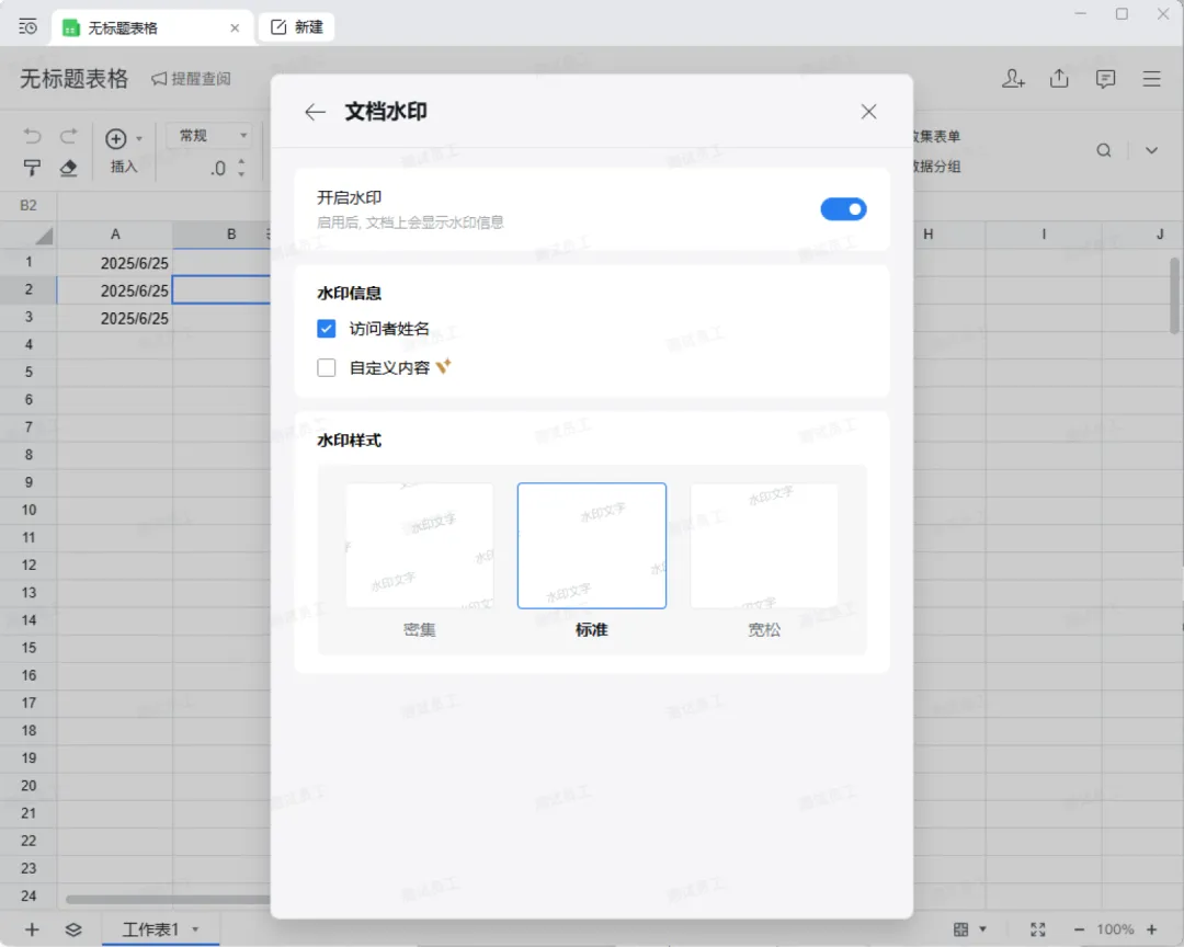 2、支持设置三种水印样式:密集、标准、宽松。