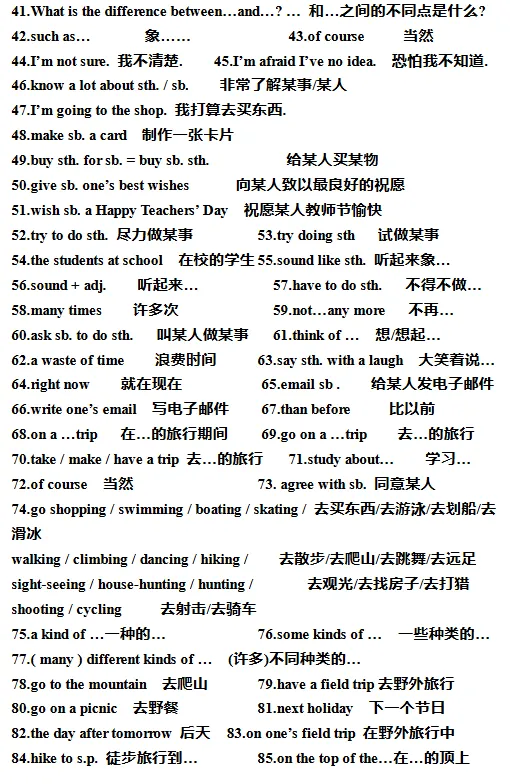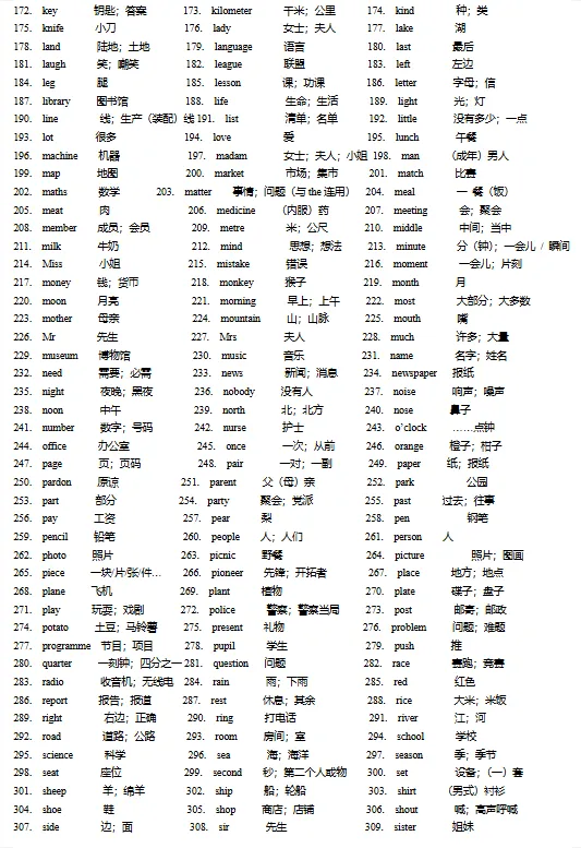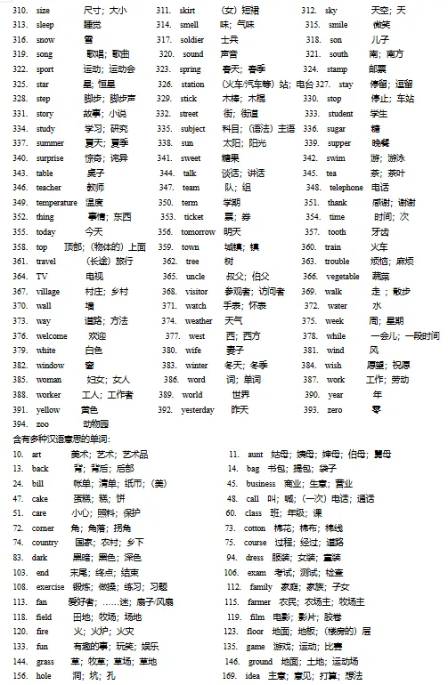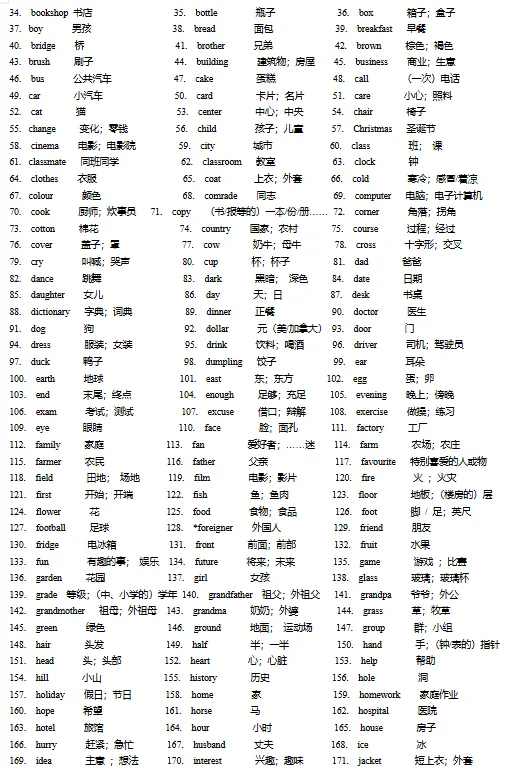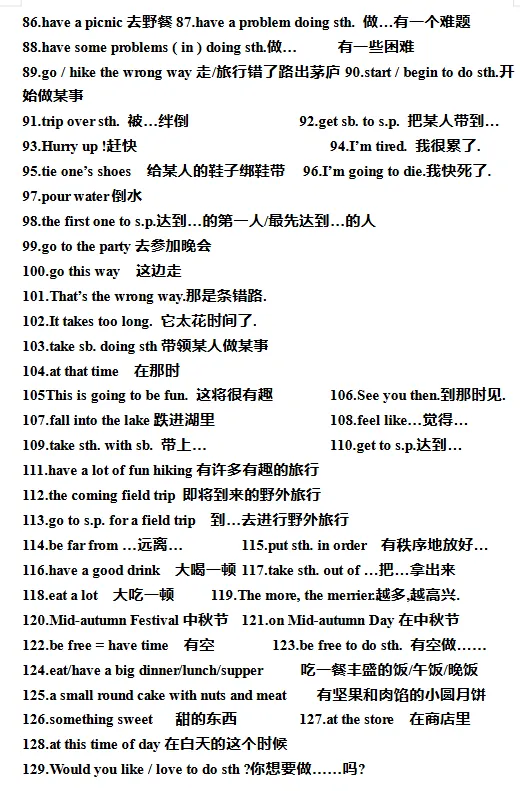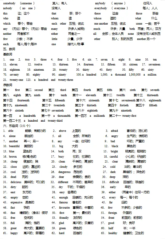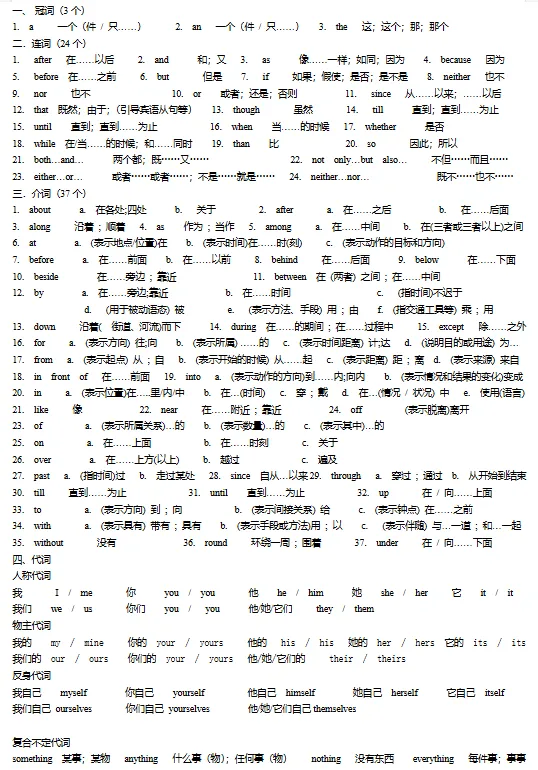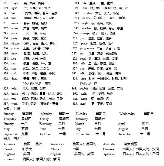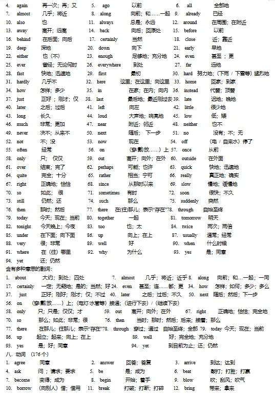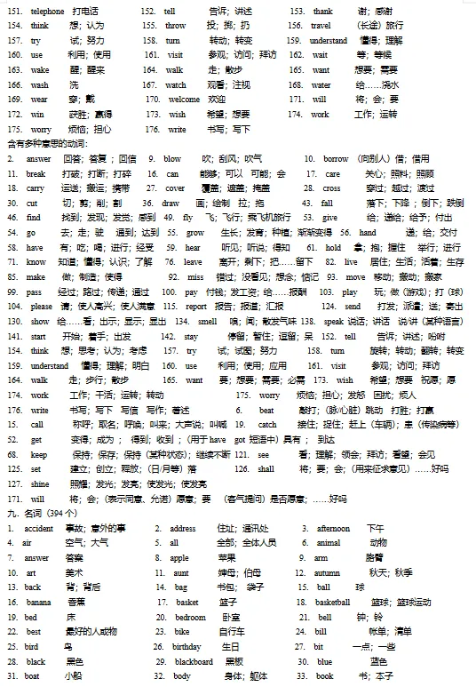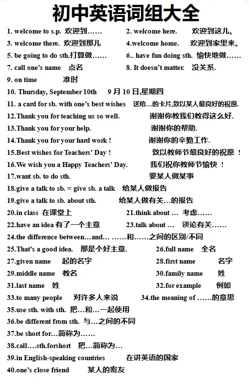 初中必备单词+词组
