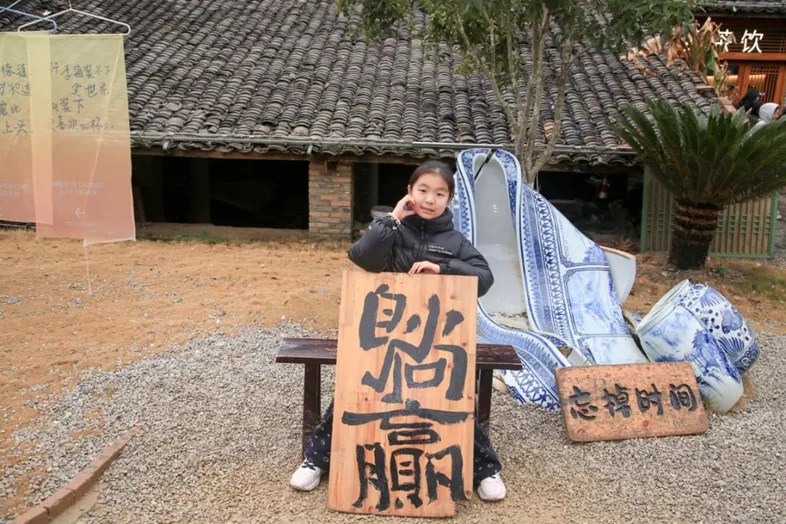 进了三宝村,我们先打卡了“爱气瓶”。它其实是烧制过程中坏掉的瓶子,瓶口和瓶身都有大洞,地上的牌子写着它的名字,背后还贴着“瓷画咖啡”的广告,创意十足。更有趣的是“躺赢”打卡点,一个被烧毁的大瓶子,恰好形成了躺椅的形状,让人不得不佩服当地人的奇思妙想。