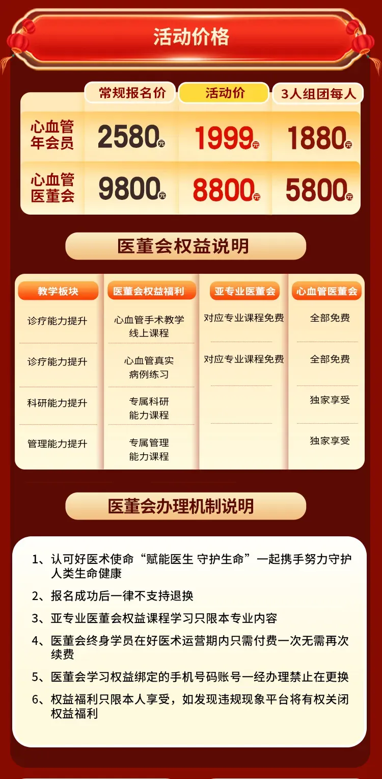 心血管学习季送福利|职业晋升发展必备-点了解 2026新春学习季火热开启 加入会员免费畅学线上线下大师班 全球TOP级心血管名医助你高效成长 立即扫码加入 咨 询 详 情 ←长按/扫码 抢占名额 点击阅读原文,立即报名