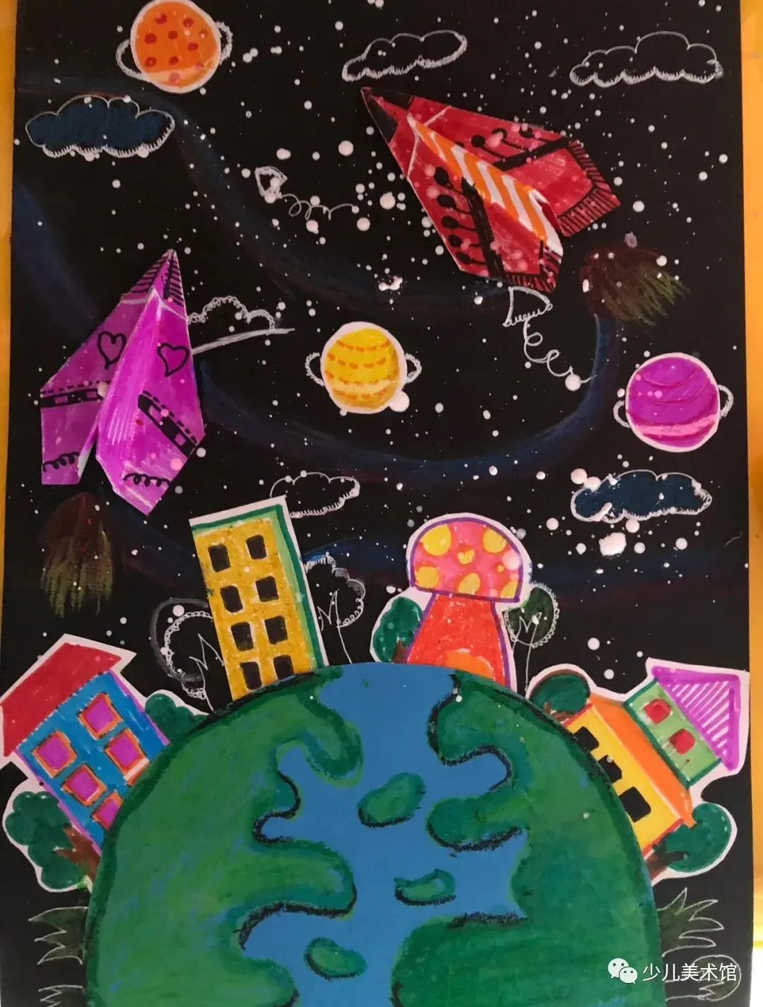 :例如春节、圣诞节、万圣节等节日,孩子们可以画出节日的气氛,像是彩灯、圣诞树或是舞龙舞狮等。 - 梦想与幻想