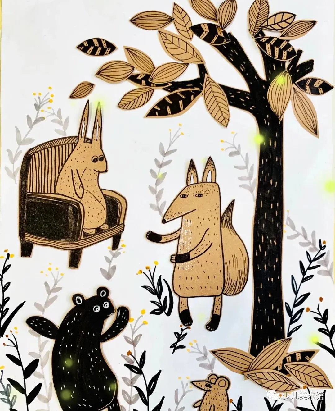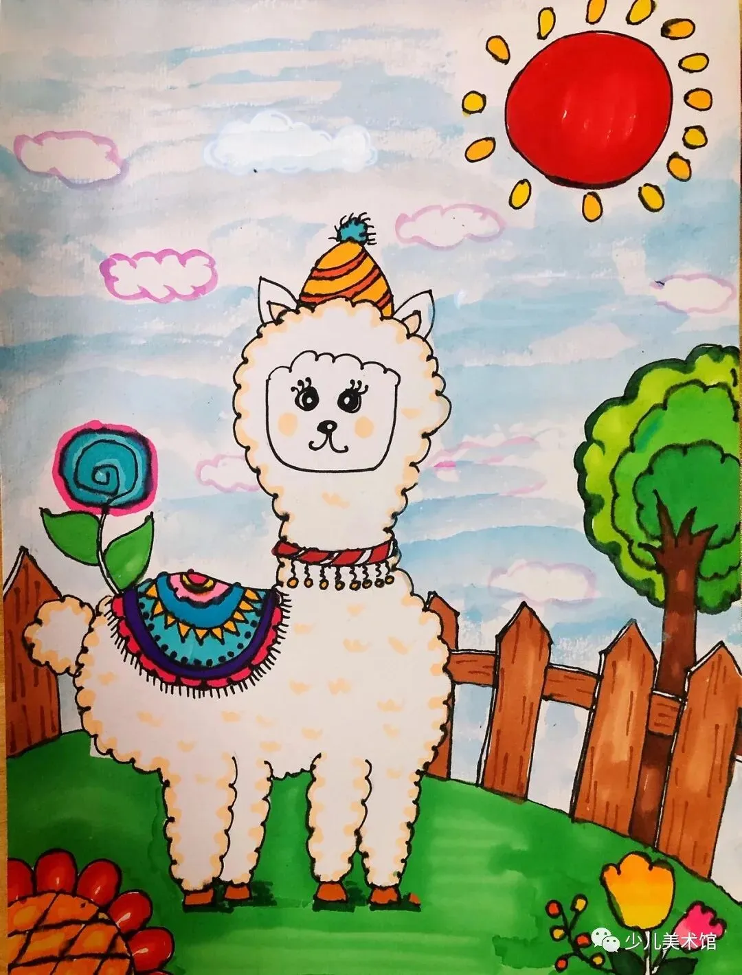 :虽然儿童画追求简单,但适当的细节处理会使作品更加生动。例如,给动物画上不同的表情、为树木加上细致的叶片、给房屋绘上窗户与门等。 - 质感表现