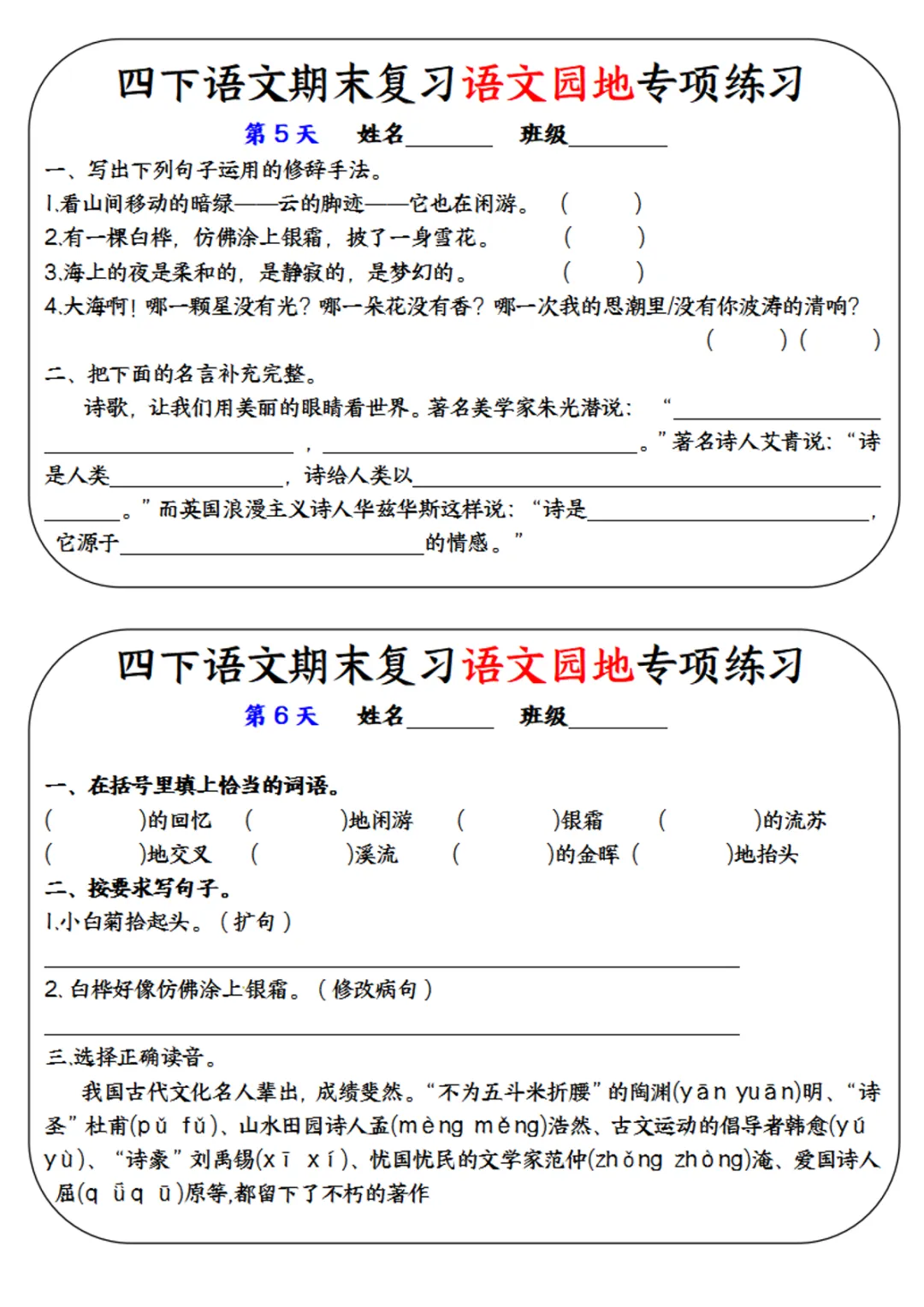 【免费下载】四年级(下)语文 期末复习语文园地专项练习训练 电子版