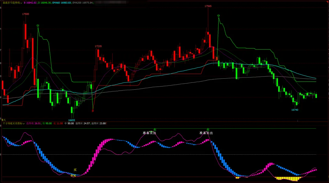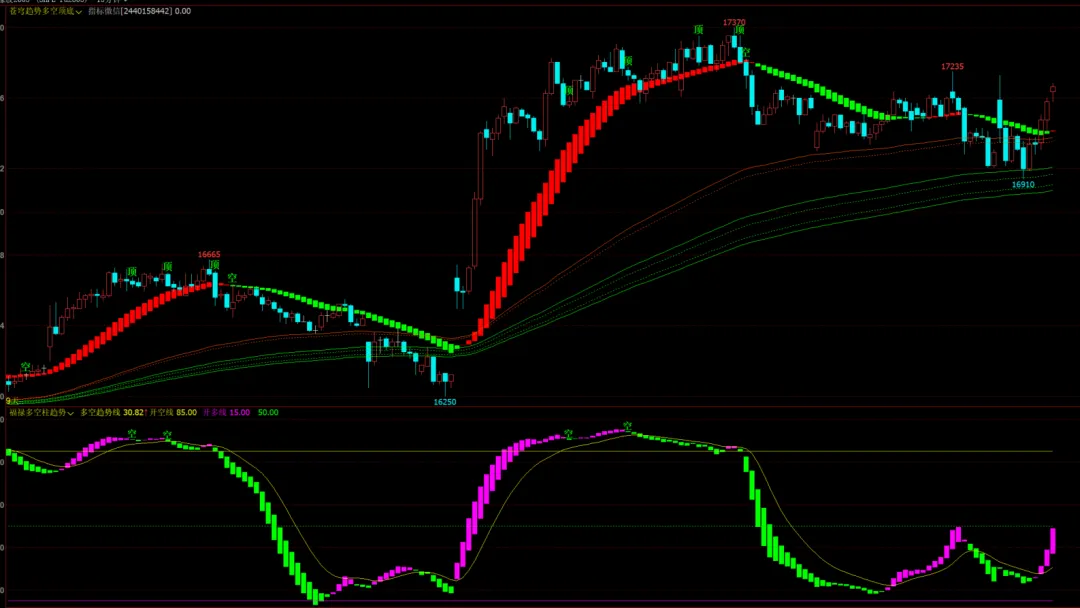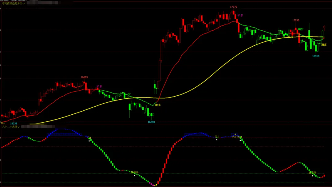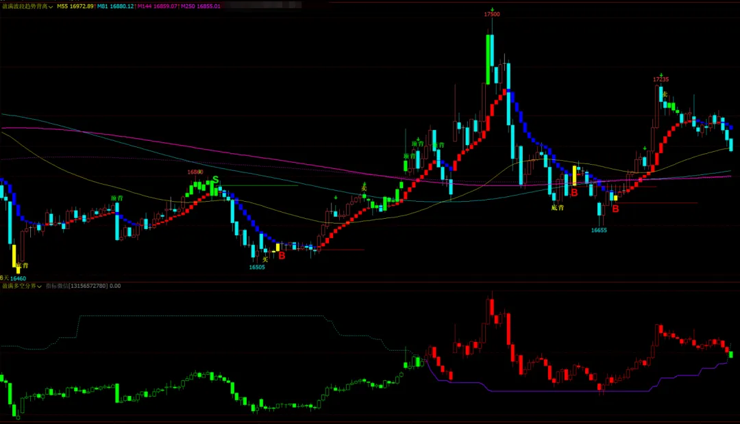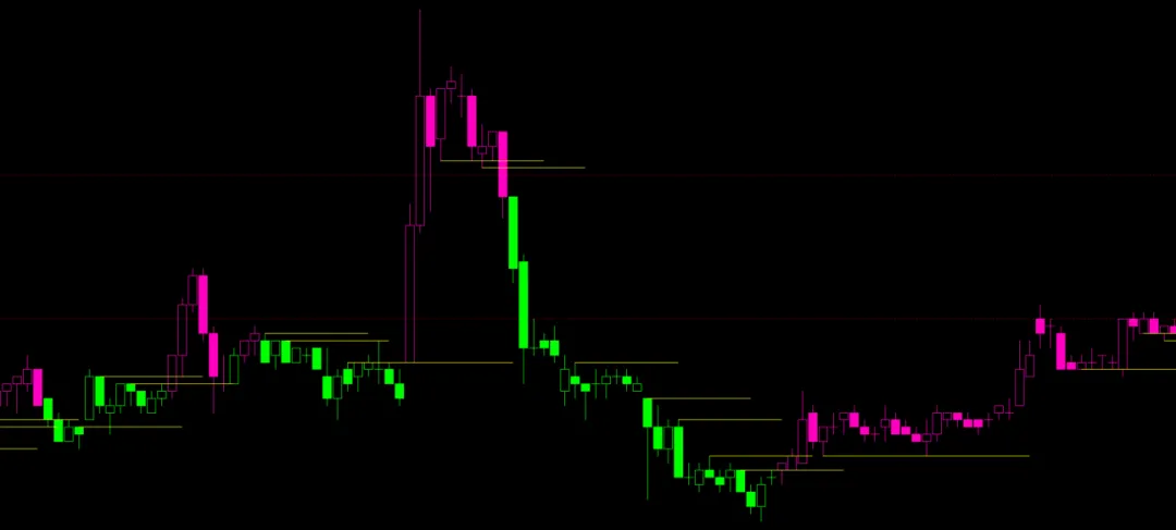 MACD变色K线指标源码-黄线标注多空转折高低点!