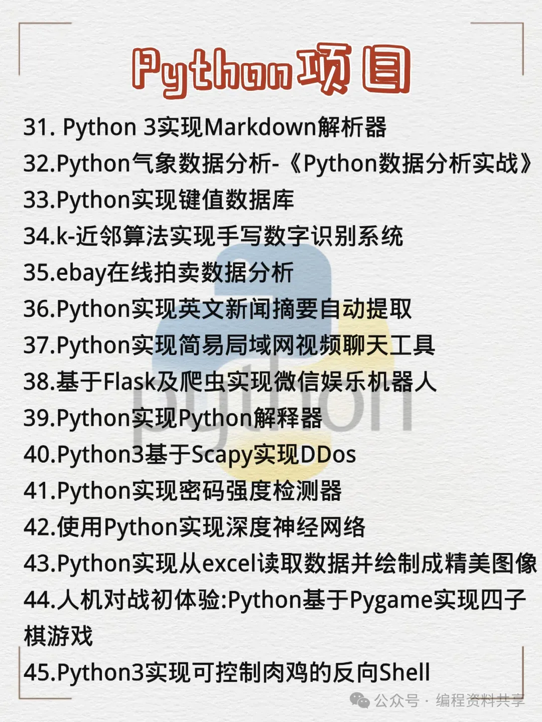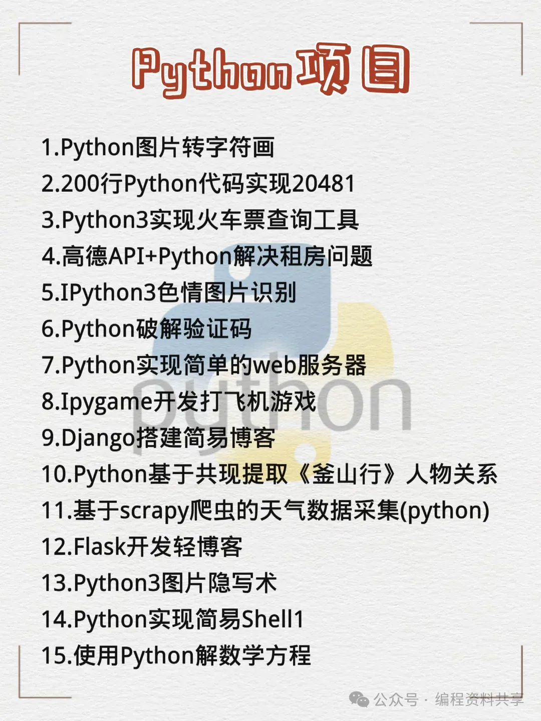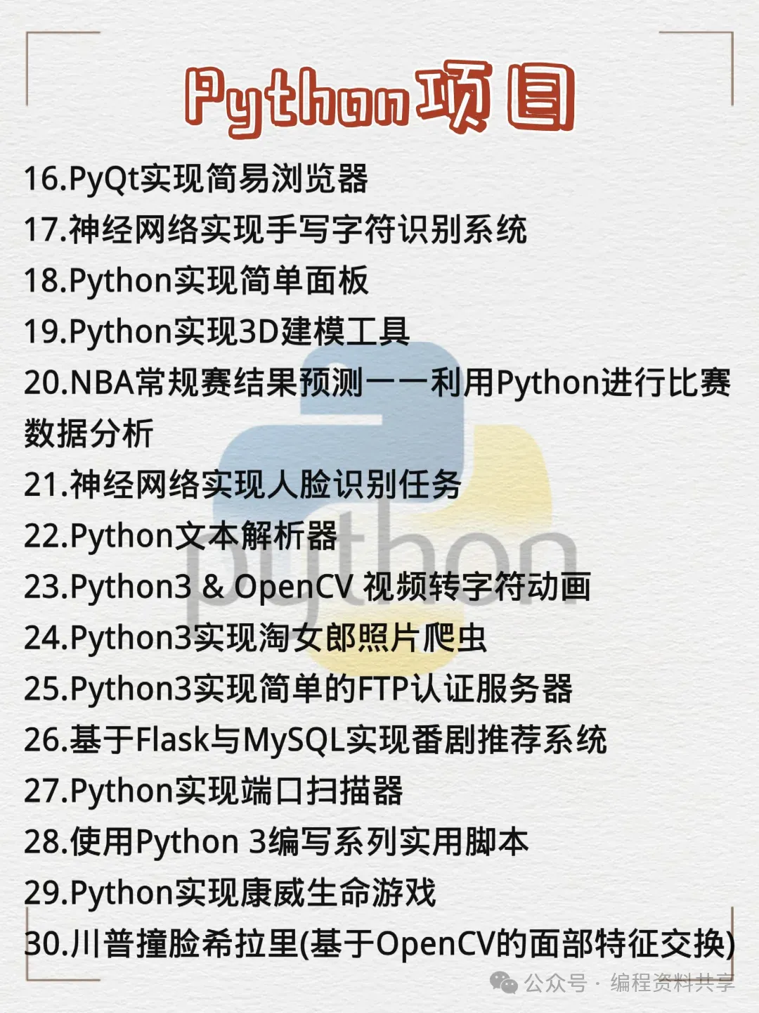 66个Python新手练手项目,附源码!小白学习必备