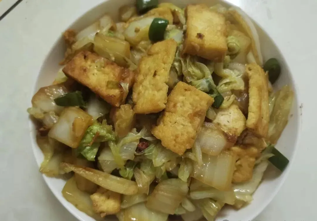 最后这道也是我的心头好~白菜脆甜 , 豆腐软嫩 , 放一起那个口感层次 , 太丰富了吧?豆腐先煎 , 葱蒜小米辣爆香 , 白菜大火快炒 , 调味后把豆腐丢进去拌匀就成!