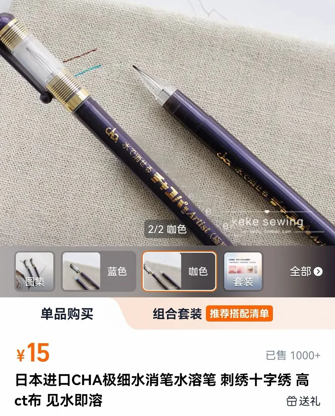 2. 气消笔/水消笔:在布料上画记号、画线迹,气消笔遇高温消失,水消笔遇水即消,不留痕迹;