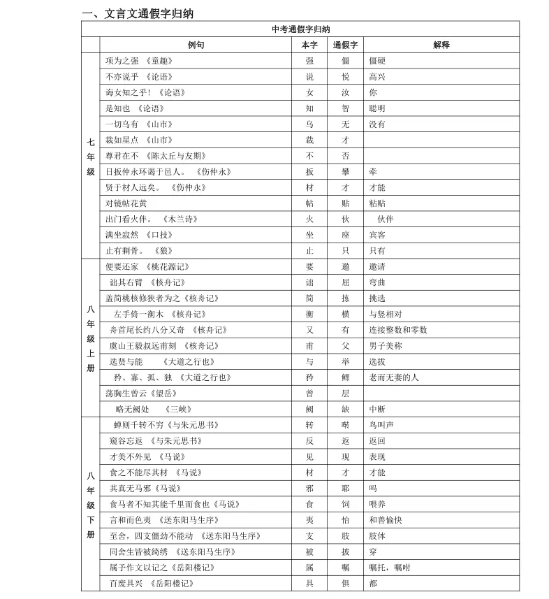 初中语文人教版文言文知识归纳(25页,可下载)