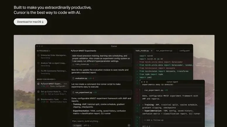 Cursor 是以 AI 为核心重建的 VS Code。它保留了你已经依赖的一切——扩展、快捷键、工作流——同时加入了能理解你代码仓库并安全地跨文件应用改动的 AI。Cursor 的强项是增强而非替代:你始终保持控制权,审查 diff、决定哪些代码上线,AI 负责减少日常编码的摩擦。