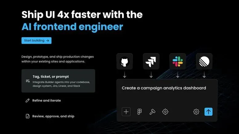 Builder.io 是一个面向整个产品团队的可视化 AI IDE,重点解决跨产品、设计和工程角色的协作问题。它直接在真实代码库和设计系统上工作,提供了一个可视化、AI 驱动的协作面,让 UI 密集型工作和跨团队改动能安全进行。所有改动仍然通过分支、PR 和代码审查来流转。