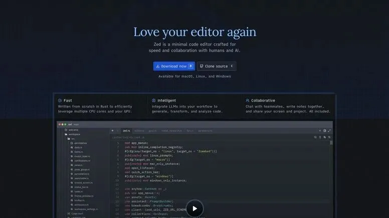 Zed 是一个超高速、Rust 原生的代码编辑器,专为低延迟编辑和实时协作而生。从滚动大文件到在大型仓库里模糊搜索,每一个操作都感觉灵敏而刻意。它从头用 Rust 构建,GPU 加速渲染,有意不做 VS Code 的 fork——这体现在性能和编辑哲学的方方面面。
