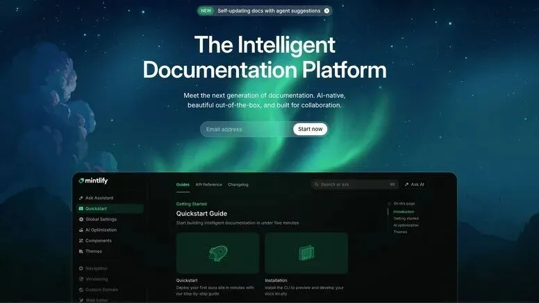 Mintlify 是一个 AI 原生文档平台,让你的文档既好看,又准确,还对机器可读。它自动生成 llms.txt 文件用于 LLM 索引,托管 MCP 服务器让 AI 工具能实时查询你的文档,还嵌入了一个 AI 助手,让用户不用离开你的网站就能得到有上下文的答案。