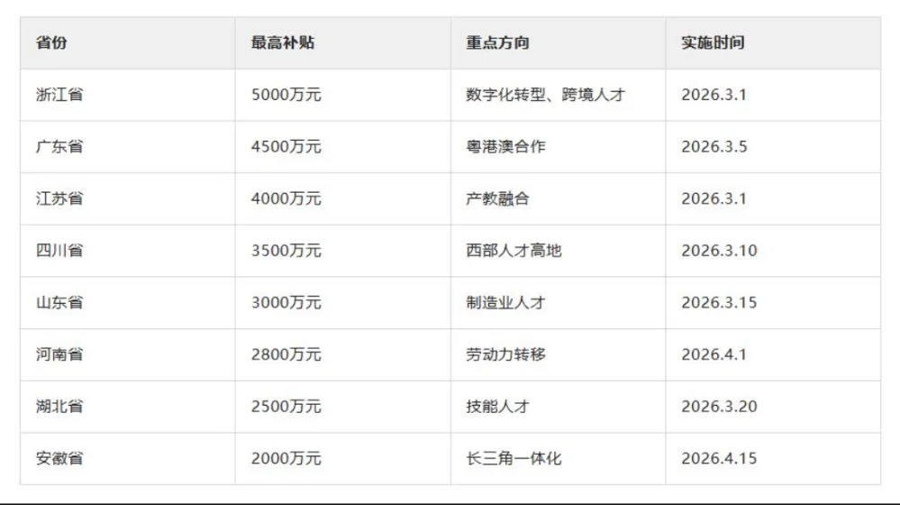 政策精神:“战略级布局+全维度赋能”,人力资源成为产业升级核心抓手:从“多省同步发布+最高5000万元补贴+明确重点方向”可见,政策释放三大信号: