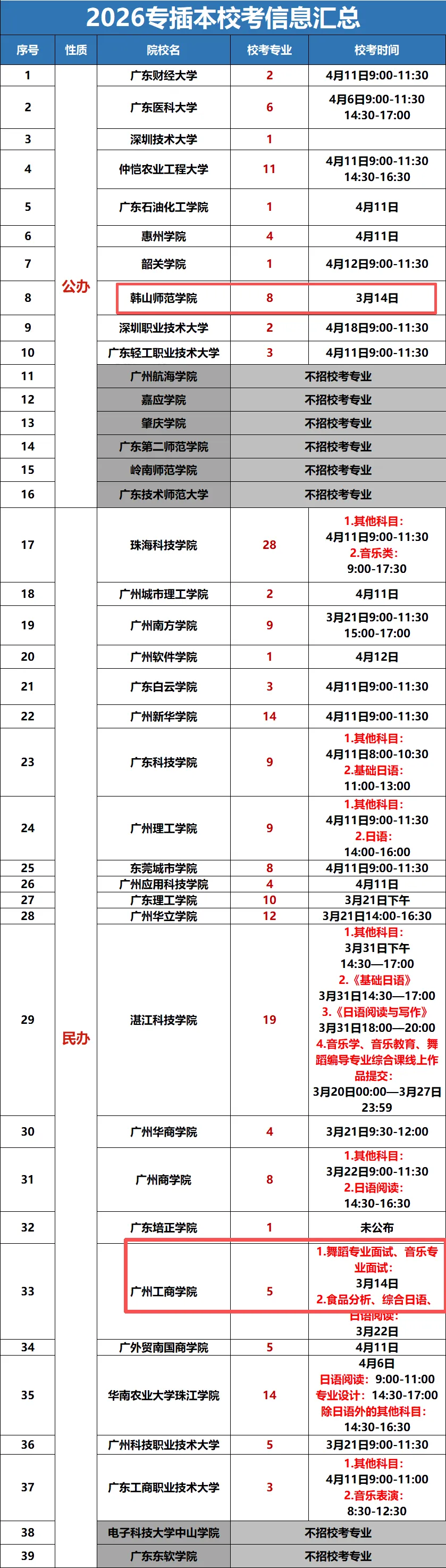 2026年专插本考试即将开始,最早一批考试将于本周3月14日举行,下周也将有更多院校陆续开考。对于参加校考的同学来说,这意味着需要开始准备各院校组织的校考专业综合课考试。