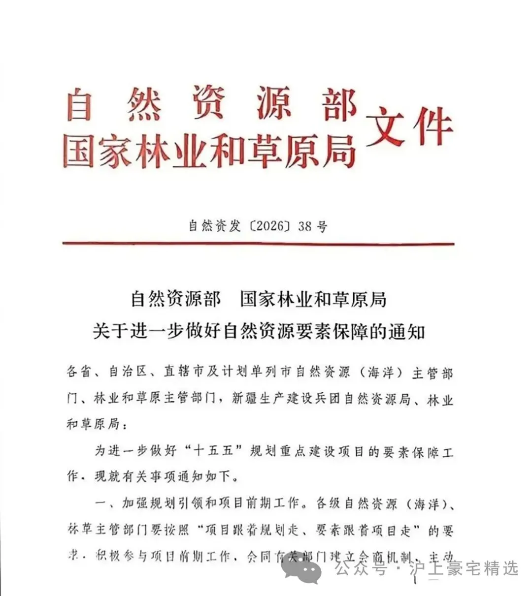 2026年3月5日,自然资源部、国家林业和草原局联合发布了《关于进一步做好自然资源要素保障的通知》(自然资发〔2026〕38号),这将是未来几年房地产市场非常重要的转折信号。