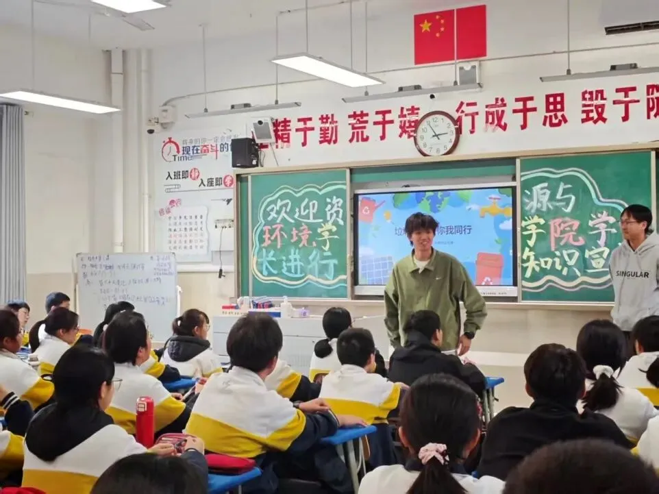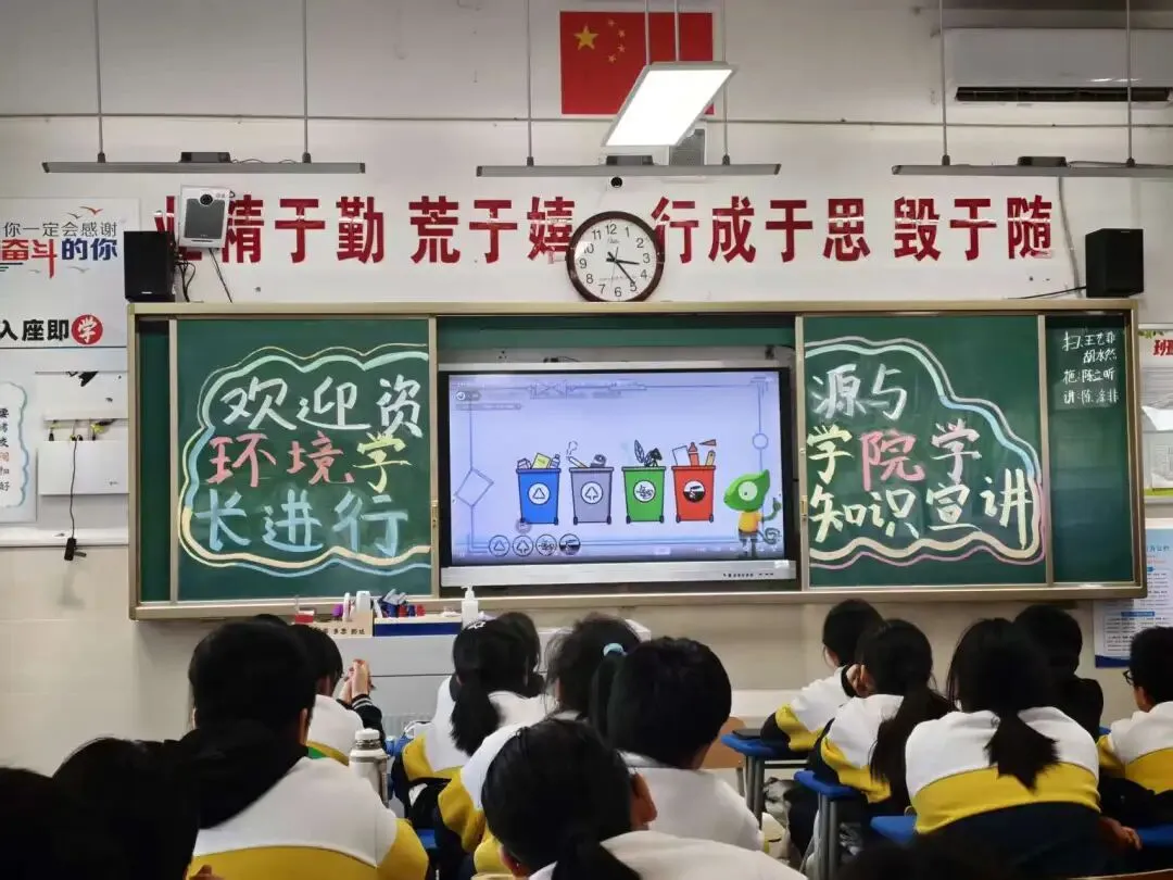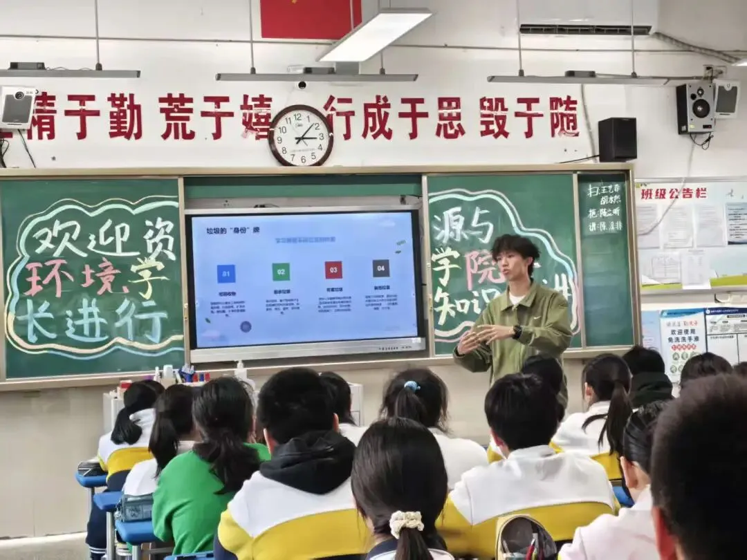 春日校园,草木萌新,书香与绿意交融。为深化文明校园建设,普及垃圾分类知识,引导学生树立绿色环保理念,我校八(4)班特邀安徽农业大学资源与环境学院的学长们走进课堂,开展了一场生动实用的垃圾分类主题科普活动,让环保理念扎根童心,让绿色行动融入日常。