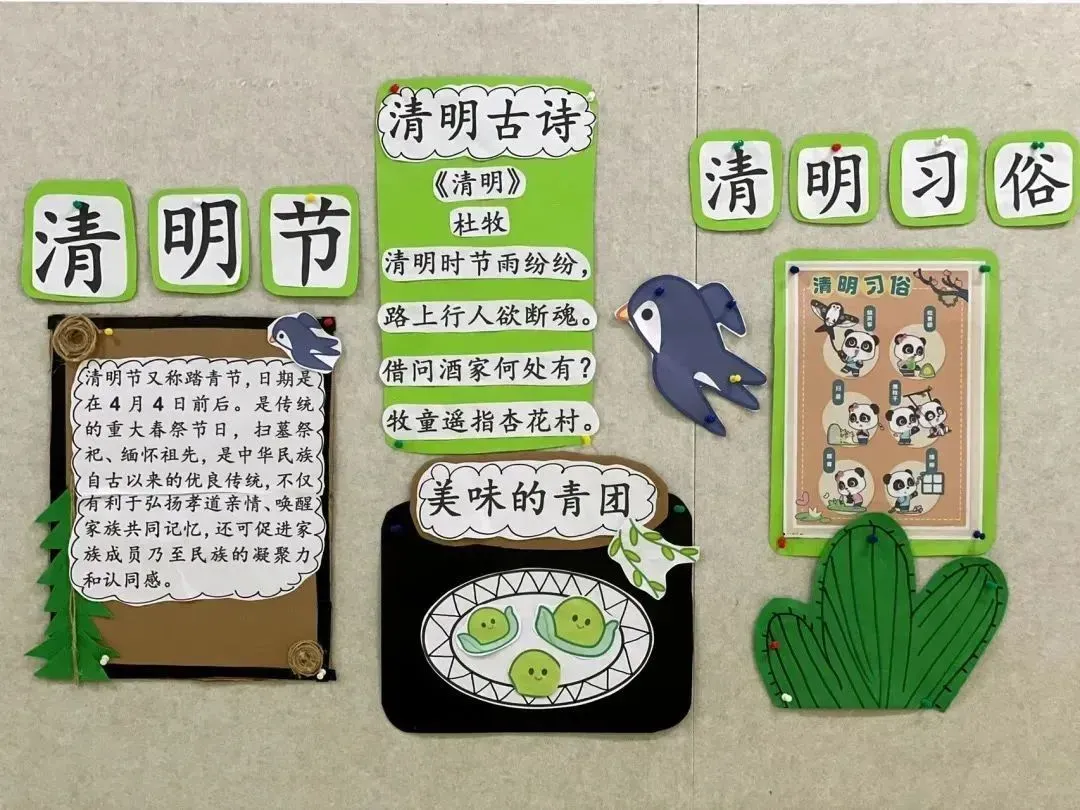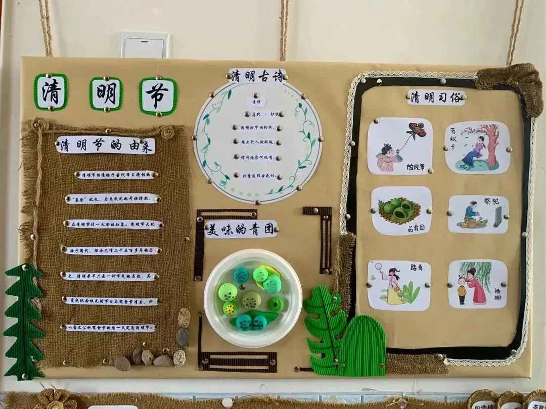 幼儿园清明节主题环创来了,含环创展板+可打印素材【幼教课件】