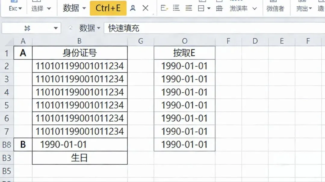 完成!全列所有身份证号对应的出生日期,1秒全部提取完成,不用输一个函数,不用手动翻一个号码。