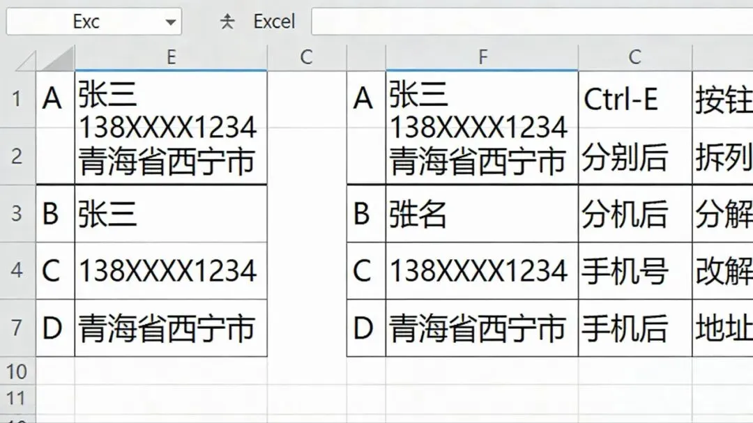 《Excel Ctrl+E快速填充全教程,零基础数据整理技巧新手秒会》