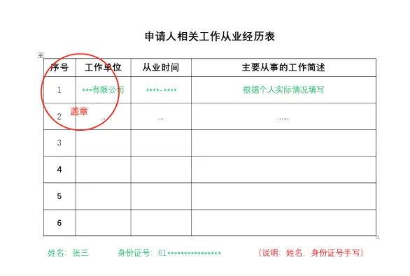 《从业经历表》和《学历核验说明》填写示例