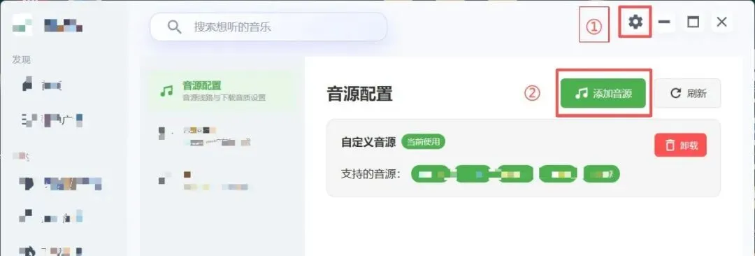 安装,进入软件后,点击【设置图标】→【点击添加音源】