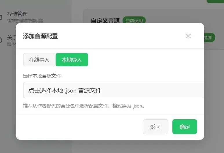 点击本地导入→【点击选择本地.json音源文件】