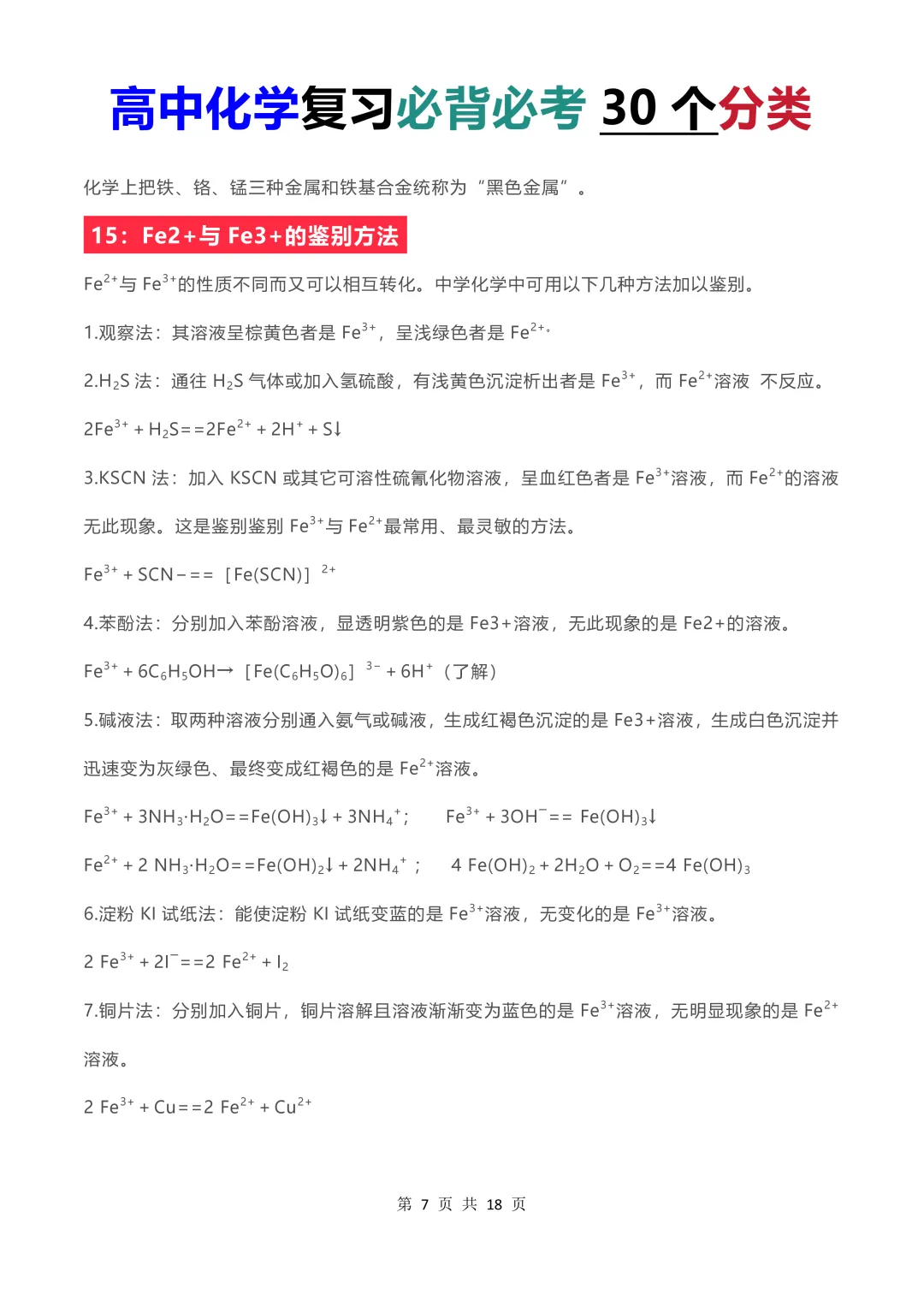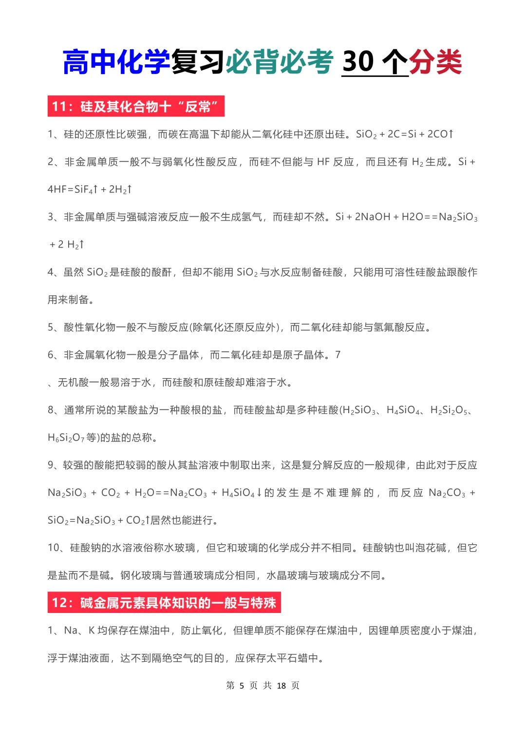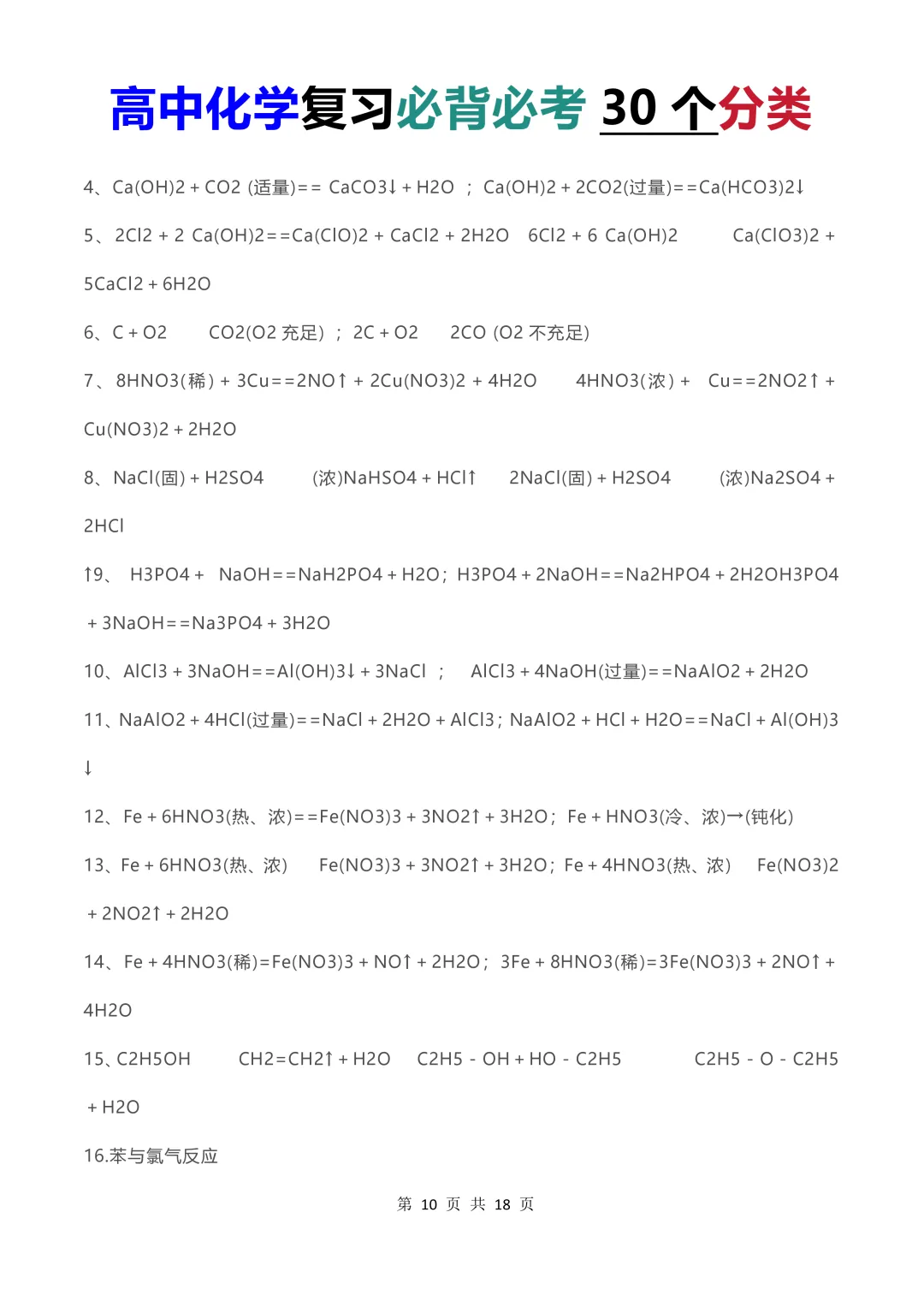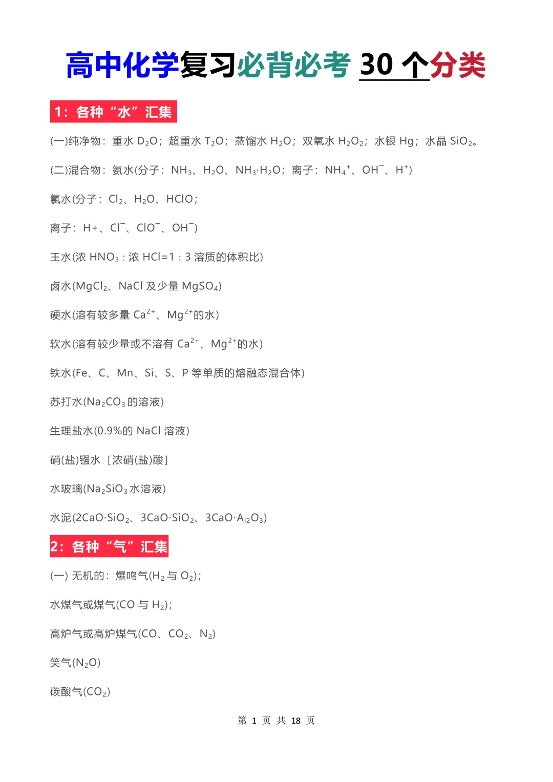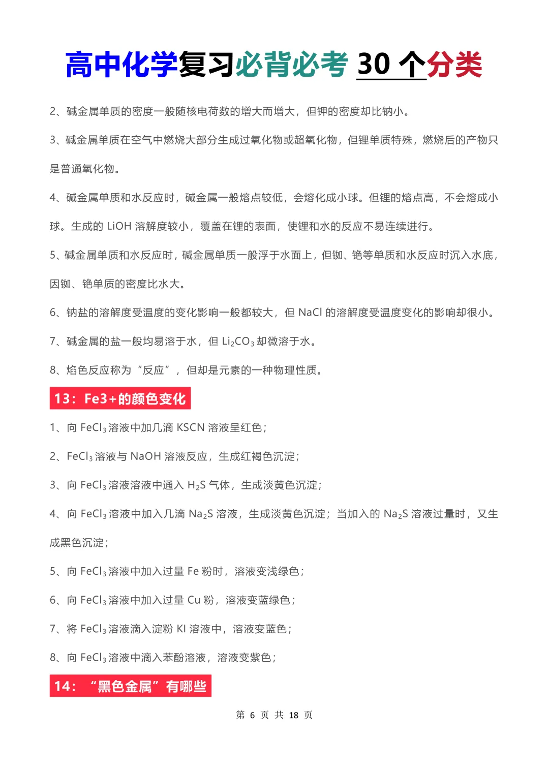 限时免费下载【高中化学】2026高中化学考试必背必考30个分类(彩色版)