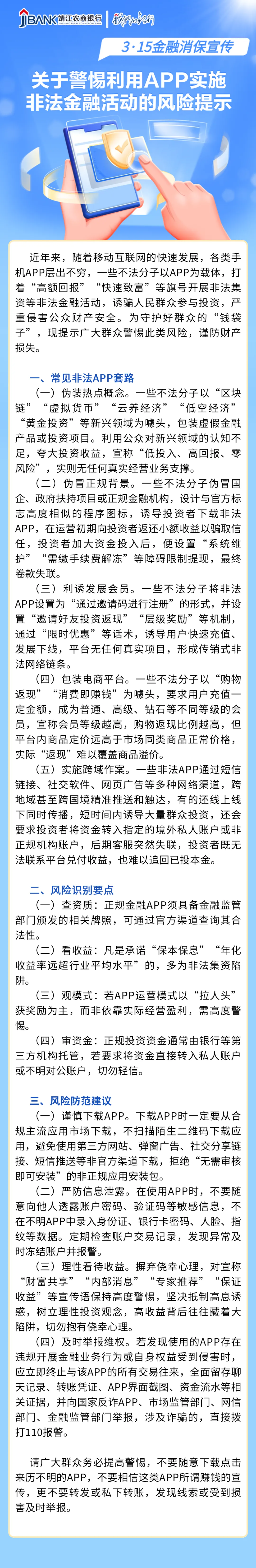 【3·15金融消保宣传】关于警惕利用APP实施非法金融活动的风险提示