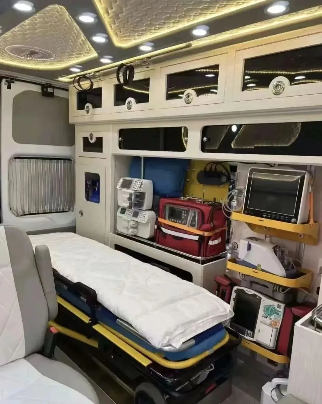 随车医生具备5年以上急诊、ICU实战经验,熟练掌握各类急救操作;护士双证齐全,提供精准护理,特殊患者可配备专项专家组。车辆按三甲ICU标准配置,搭载呼吸机、重症监护仪等核心设备,配备专项转运工具,减少患者疼痛与二次伤害。