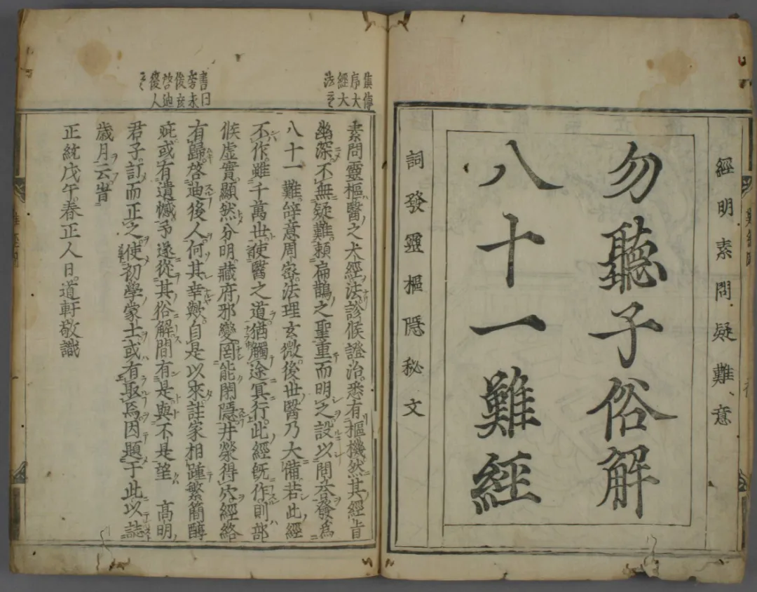 除张世贤注本外,另有南宋李駉所撰《黄帝八十一难经纂图句解》,成书于1269年,七卷,收入《正统道藏》太玄部,卷首有《难经注义图序论》载图三十八幅,图解脏腑、阴阳、营卫、脉象、经络等,也是《难经》图注本中的重要古籍。明代熊宗立《勿听子俗解八十一难经》亦于卷首绘图解二十八幅。这些“八十一难经图”古籍,以图释经、图文互证,是研读《难经》不可或缺的珍贵文献。