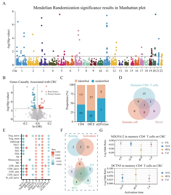 本研究开创性地整合动态孟德尔随机化与多组学策略,首次在CD4+ T细胞活化全过程水平上系统鉴定了与结直肠癌风险相关的关键免疫基因,为结直肠癌的免疫治疗靶点发现提供了新的因果证据。