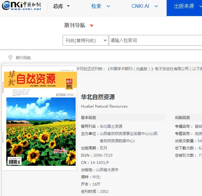 《华北自然资源》杂志是知网双月刊,属于综合性学术期刊,更多投稿须知
