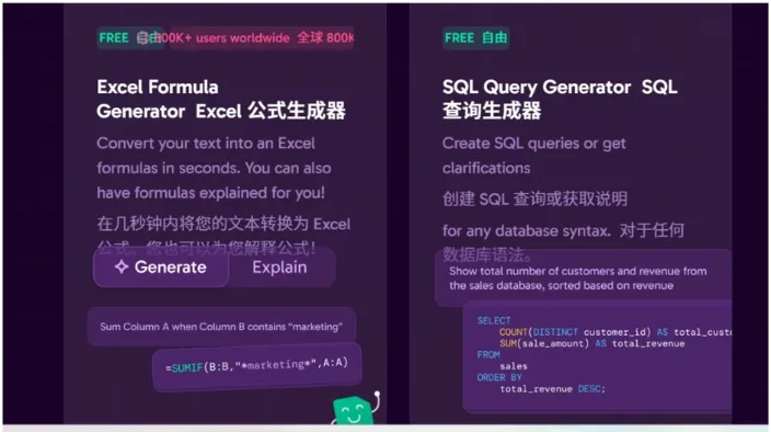 首先是精准需求,Excel用户的公式生成需求高频且刚性,付费意愿强。