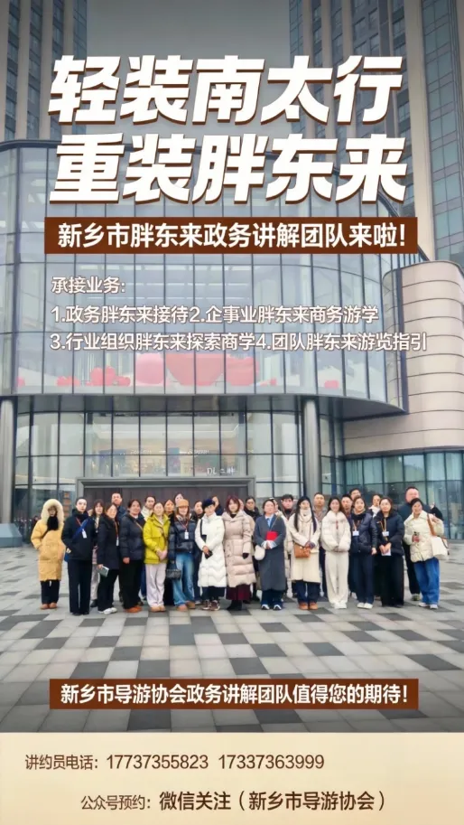 如果你是刚拿证的新手,或是想转型的资深导游,亦或是追求工作自由的兼职从业者,新乡市导游协会,就是你在新乡文旅行业扎根成长的最佳选择!赶紧加入我们,解锁专属福利,一起在新乡的导游赛道上,走出属于自己的精彩!