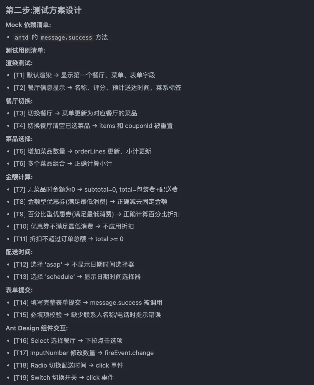 接着就是第二步“测试方案设计”的生成,会罗列 Mock 依赖清单以及对应的测试用例清单