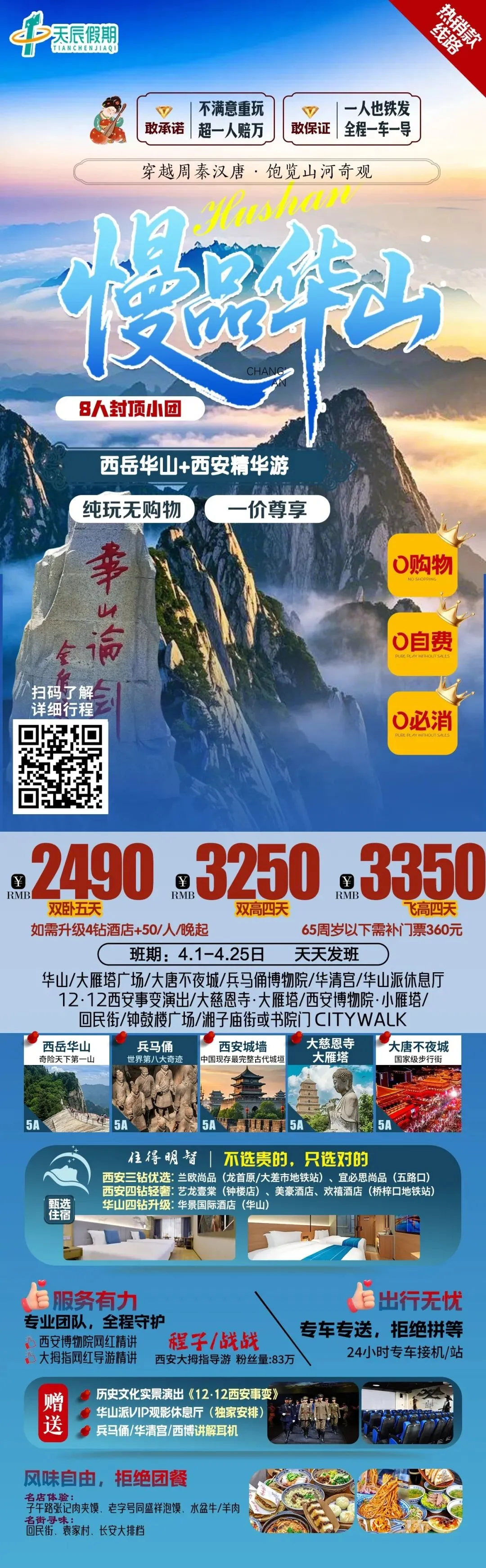 📍华山+兵马俑+华清宫+湘子庙街或书院门